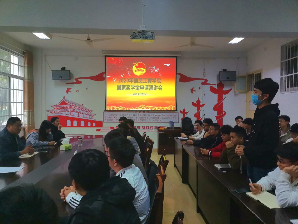 本网讯(学生记者/丁奇帅)10月6日下午,信息工程学院在12教1楼会议室召开2020年奖助学金专题会议并举行国家奖学金申请演讲会,学院党委副书记张哲出席并主持会议,学生工作办公室主任赵杰及全体专兼职辅导员参加会议并担任评委。