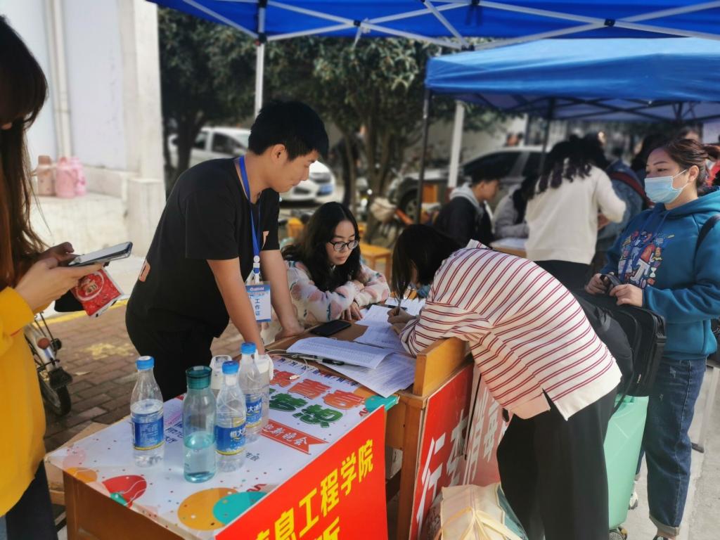 本网讯(学生记者/曹书涯、丁奇帅)10月8日,迎新工作迎来高峰期。来自祖国大地的200余名同学怀揣对着大学生活的美好向往,承载着家庭的殷切期望,来到了期待已久的信息工程学院,开启了人生的新征程。