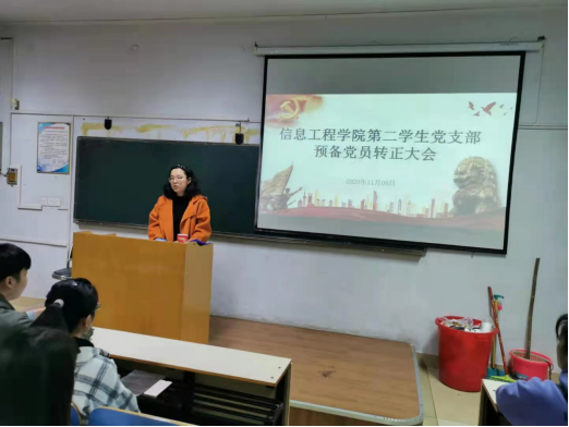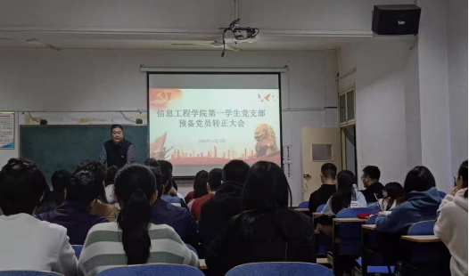 本网讯(特约记者/张 露 学生记者/丁奇帅)2020年11月12日,信息工程学院学生党支部分别召开预备党员转正大会,第一学生党支部书记赵杰、第二学生党支部书记徐梦霖、第三学生党支部书记张露主持大会,全体学生党员及预备党员参加会议。