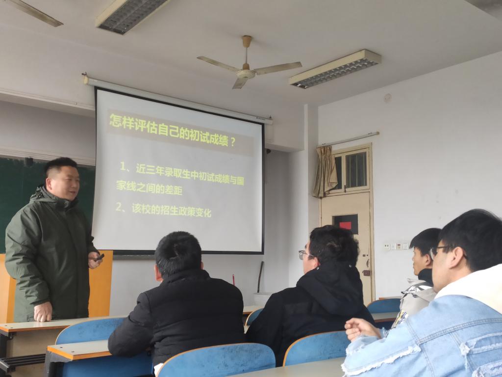 王运锋具有丰富的考研辅导经验,授课生动形象,思路清晰明确,深受同学们欢迎。幽默诙谐的风格让一场知识性讲座变得趣味横生,让同学们在轻松的氛围中获取了重要的考研知识和信息。王运锋结合自己的经验,就分数偏低的学生如何调剂,在复试过程中如何联系导师,如何准备笔试、面试及面试过程中需要注意的问题等方面进行了详细讲解。