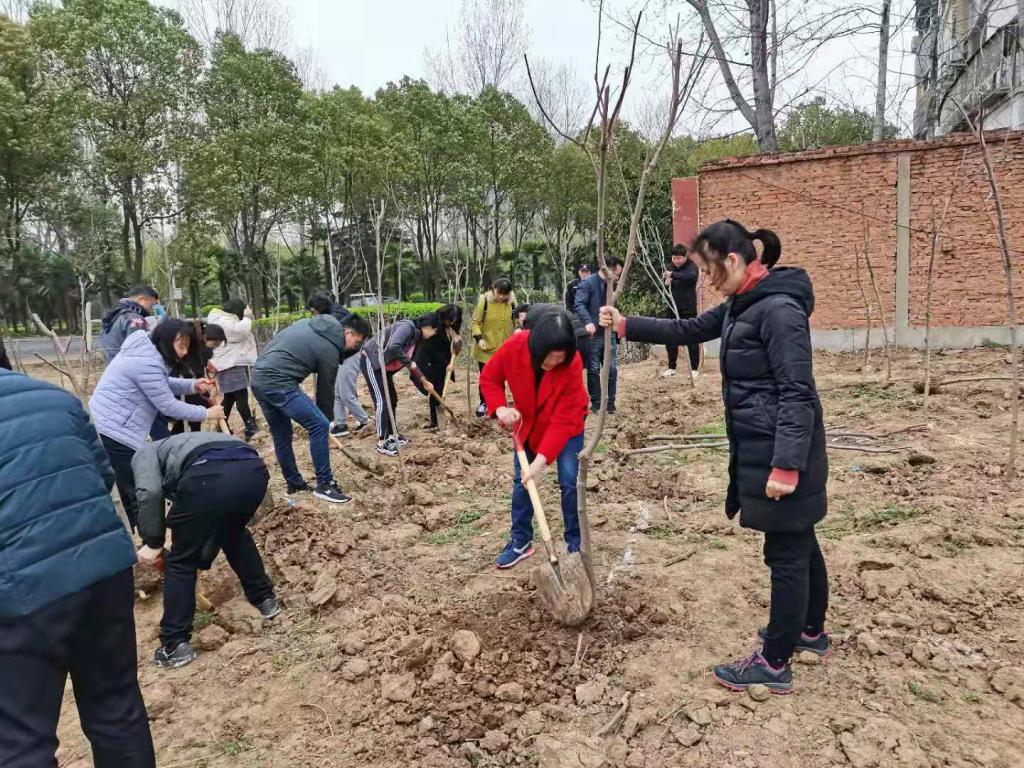 植树现场热火朝天,干劲十足。大家分工协作、积极配合,挖坑、铲土、栽树、填埋、浇水……所有动作有条不紊。经过1个小时的劳动,一排排新栽种的树苗迎风挺立,为初春的美丽校园又增添一道风景线。