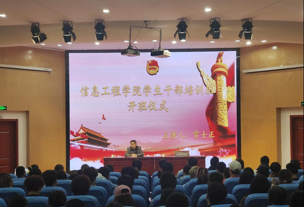 本网讯(特约记者/张露学生记者/丁奇帅、周浩)3月25日晚,信息工程学院在领创空间二楼报告厅举行学生干部培训班开班仪式。学院党委书记常士正、心理健康教育中心教师孟凡锐、全体辅导员出席活动,全院学生干部参加。党委副书记张哲主持仪式。