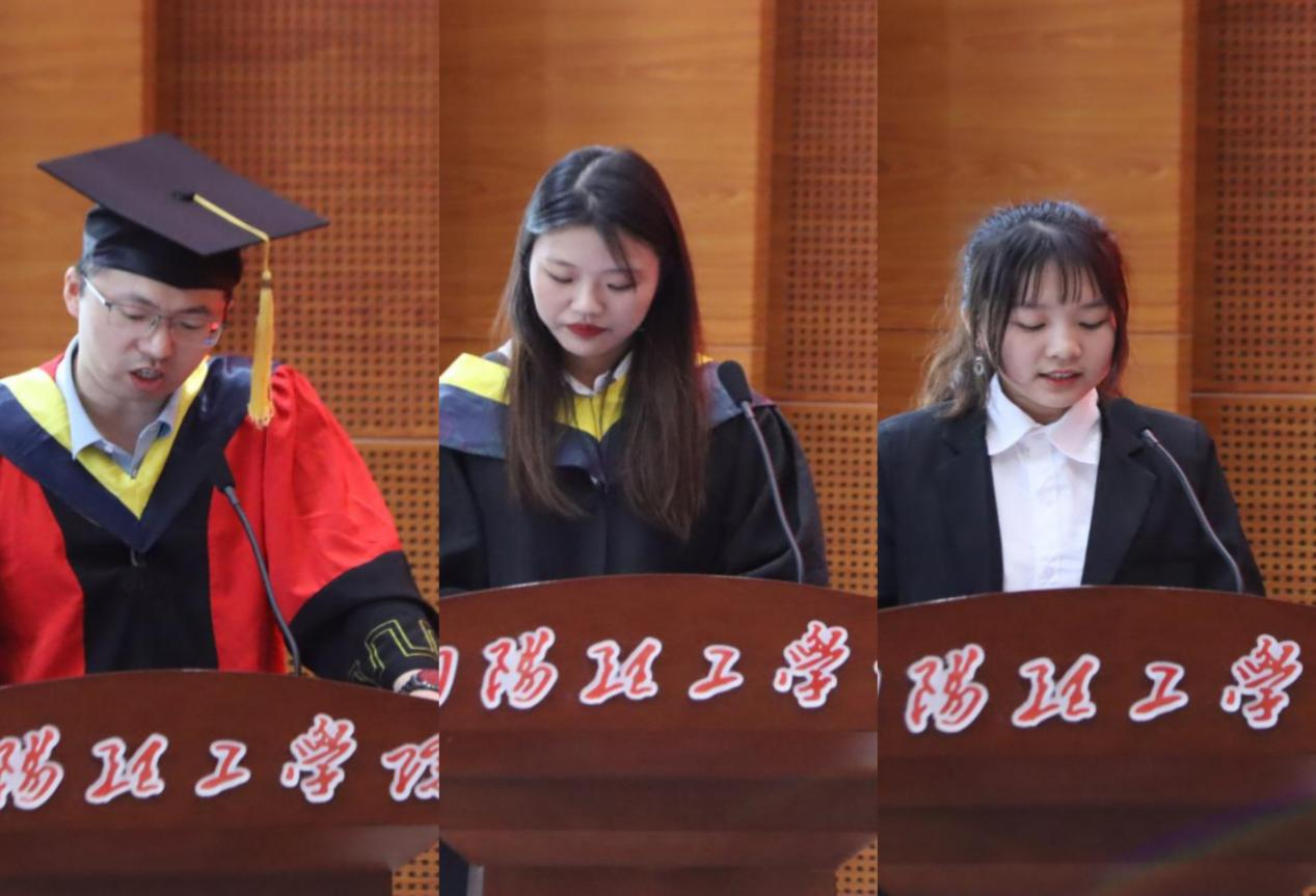 教师代表孙曦,毕业生代表李佳一,在校生代表袁莹莹分别发言。孙曦寄语同学们:要热爱自己的专业,持续深耕,了解国家发展和社会需求,让青春的梦想绽放更加绚丽的光彩。李佳一回顾了大学四年的成长经历,表达了对老师同学们的诚挚感谢!袁莹莹表示将以优秀的学长学姐为榜样,修身立德,勇于担当,上下求索,知行合一,志存高远,胸怀祖国。