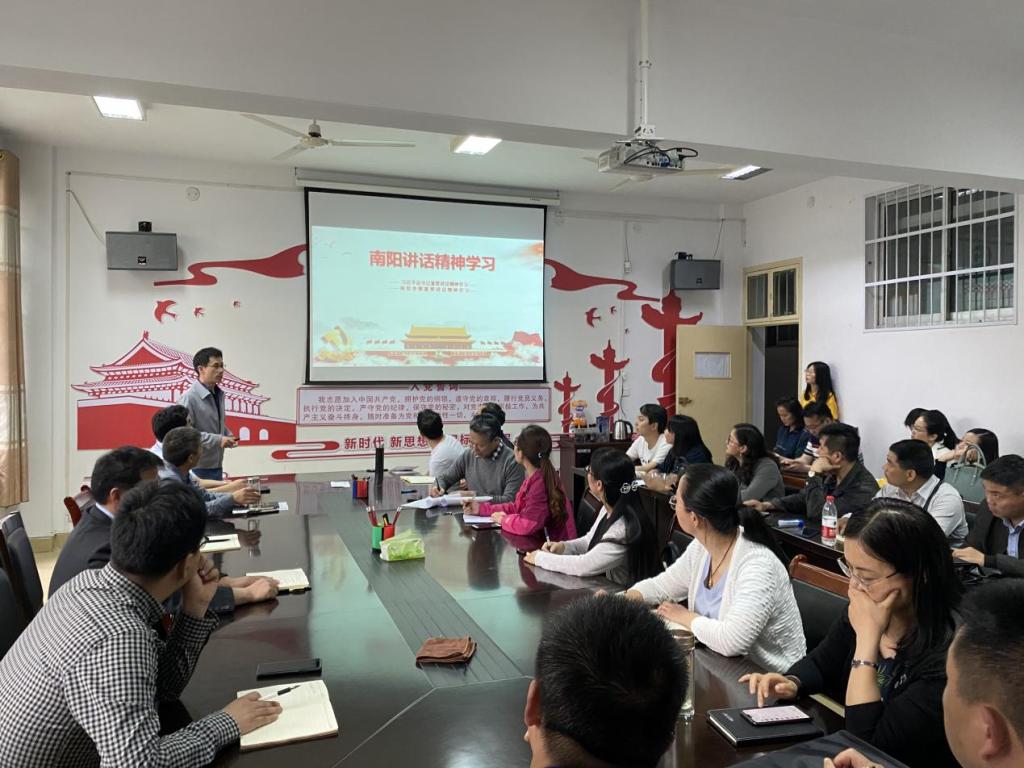 党委书记常士正强调,要把学习贯彻习近平总书记在南阳考察调研时的重要讲话精神同党史学习教育结合起来,推动学习贯彻往深里走、往实里走。要利用好教职工会议、学生主题班会等多种形式,在全院掀起学习宣传热潮,引导党员干部和广大师生牢记初心使命,凝聚立德树人力量。