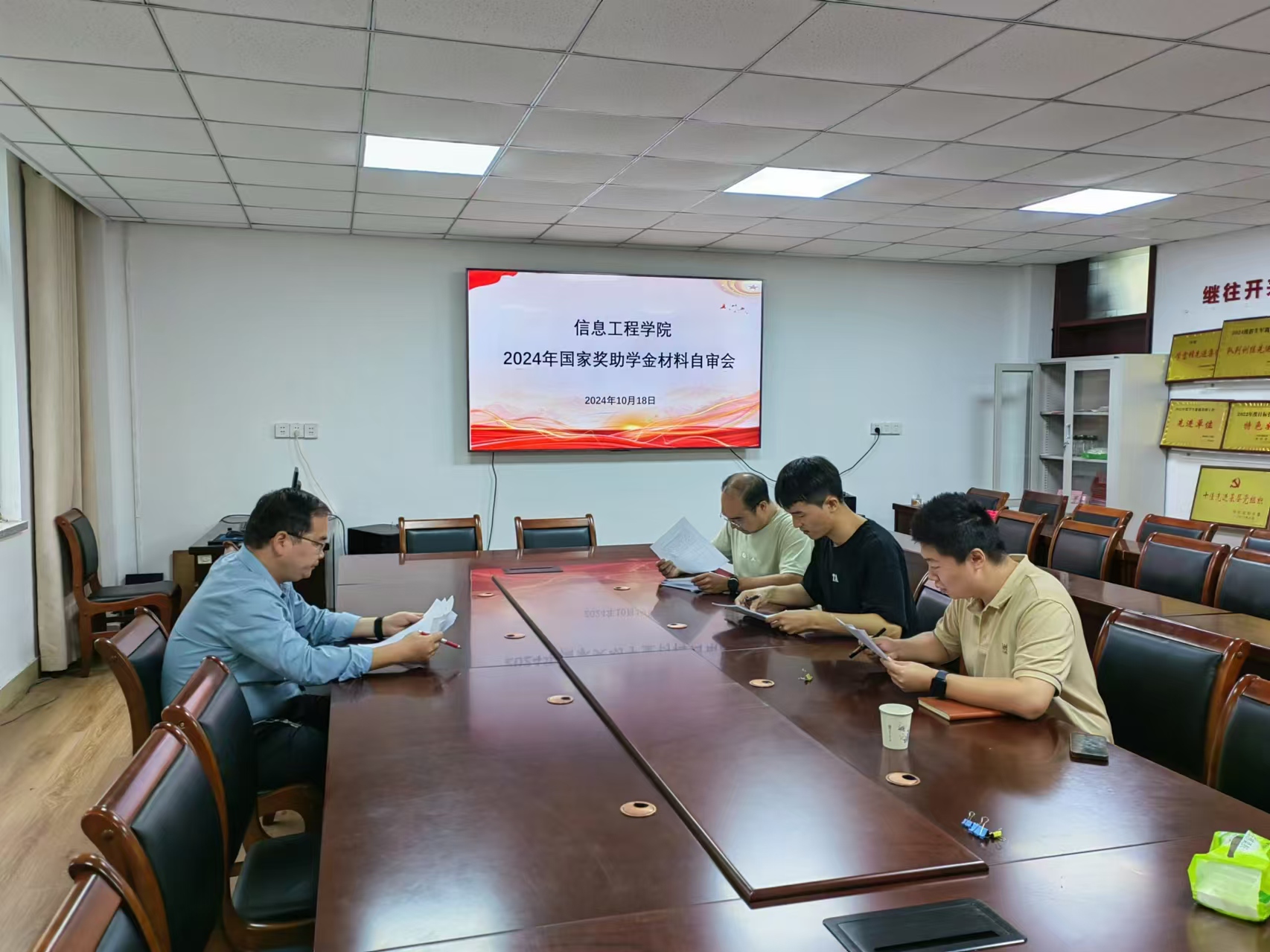 本网讯(特约记者/关阳、学生记者/郭雨涵) 为深入推进资助育人工作,贯彻国家对于国家励志奖学金、国家助学金评定的相关要求,促进学院学子品学兼优、全面发展氛围的养成。10月18日信息工程学院于12教216会议室召开国家奖助学金材料自审会。学院党委副书记白秋阳主持会议,韩璞,李志,关阳等辅导员老师参与。