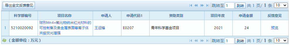 本网讯(特约记者/曹原)8月18日,国家自然科学基金委公布了2021年集中接收申请项目的评审结果。我院教师王运锋依托中山大学博士后流动站申报的《球形Mn4+氟化物纳米红光材料的可控制备及贵金属表面等离子体共振荧光增强》青年基金项目喜获资助,资助金额24万元。