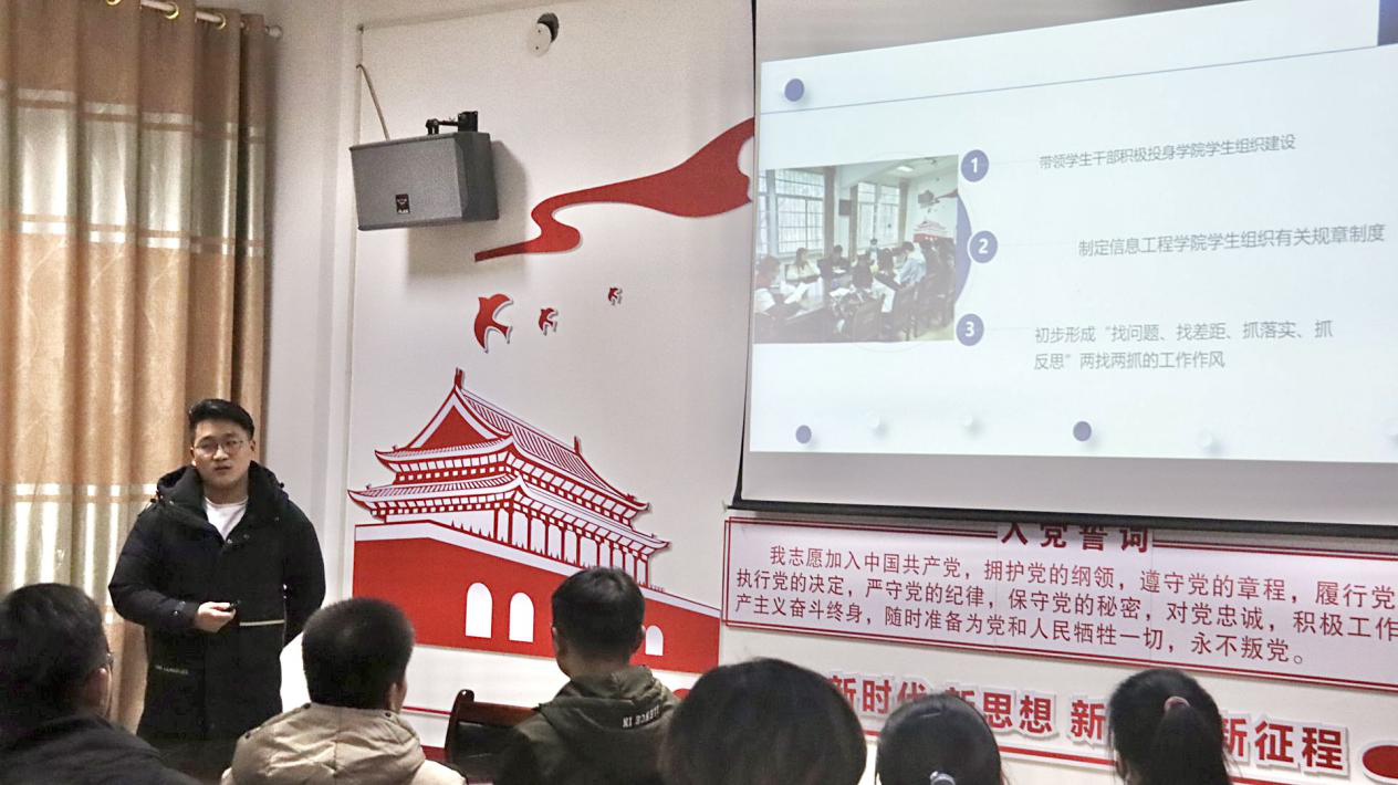 本网讯(学生记者/赵正、肖淬源)11月28日晚,为促进校园精神文明建设,发现典型、表彰先进,信息工程学院在12教116会议室开展2020-2021学年“校园百佳之星”评选活动。团学办主任赵杰,部分辅导员出席本次活动,19、20级优秀学生参与评选。