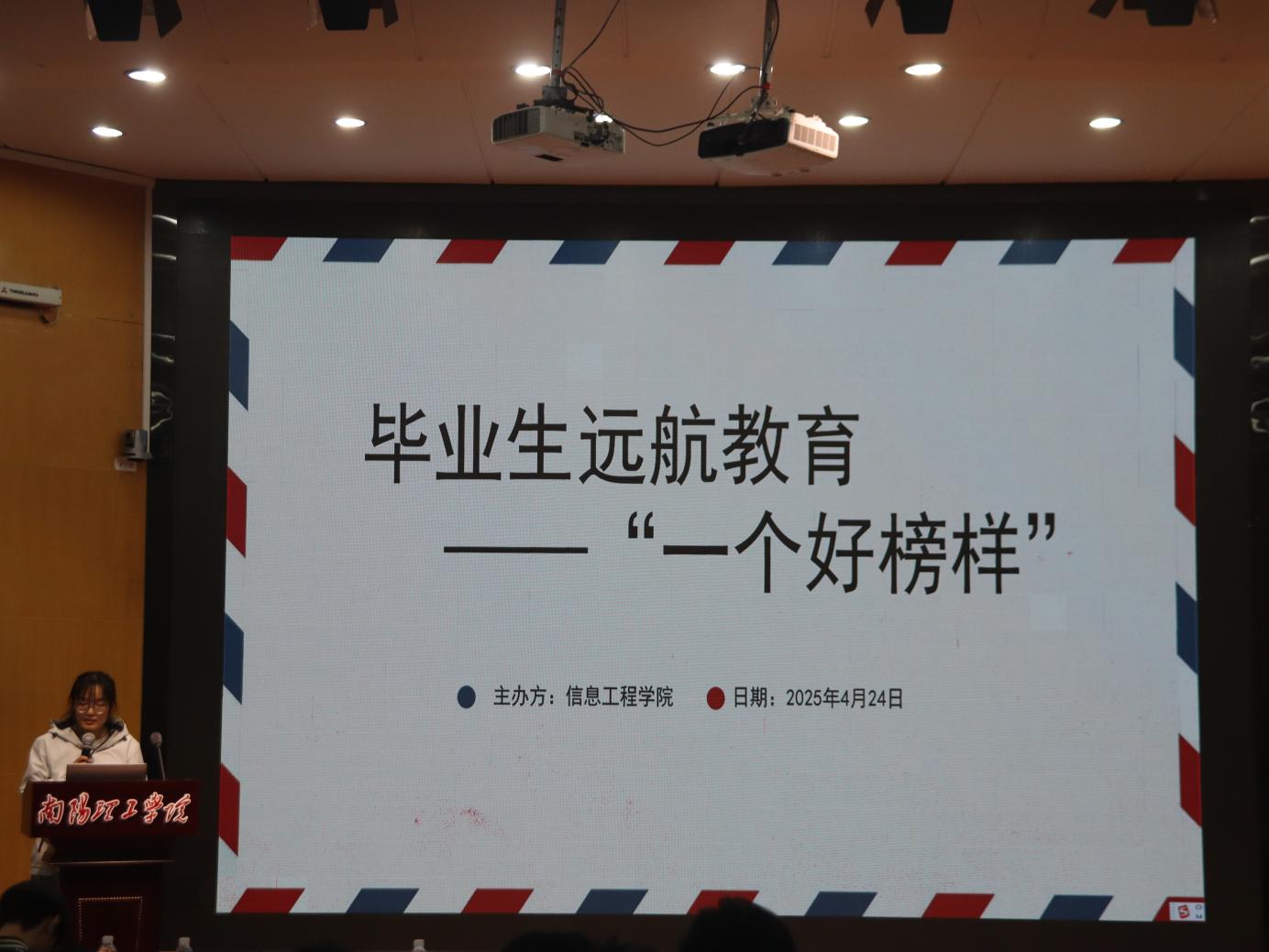 本网讯(学生记者/苏婧媛 王蓝平)为充分发挥优秀毕业生的榜样力量,帮助低年级学生明晰职业规划、汲取成长经验,4月24日,信息工程学院于领创空间举办了2025届毕业生专题讲座之“一个好榜样”。本次活动邀请已成功就业和考研“上岸”的6名2025届学生代表分享经验,吸引了众多22级、23级、24级学生参与。