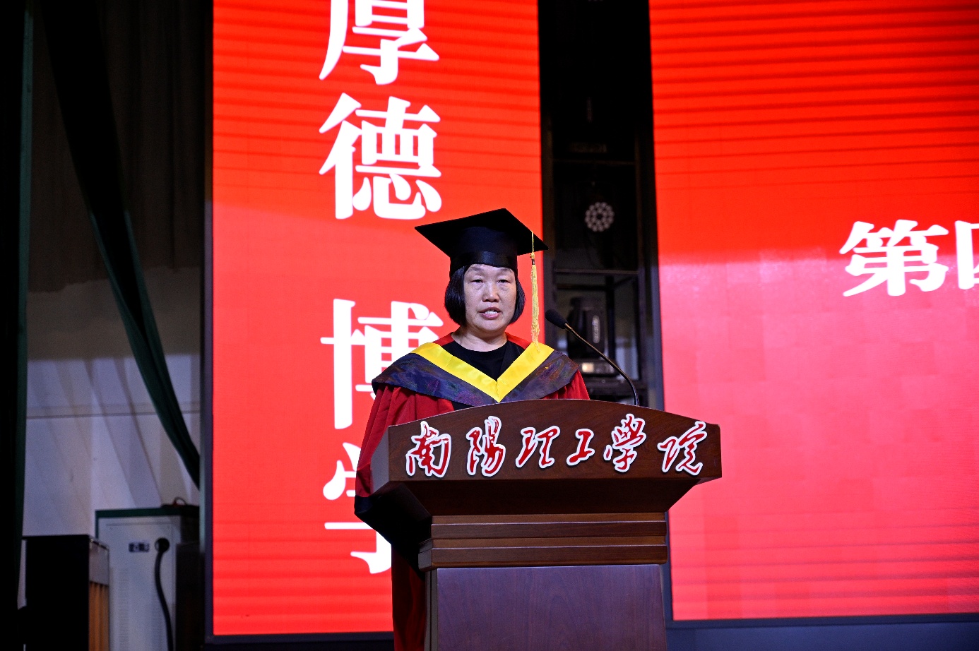 随后,典礼进入高潮环节——学位授予仪式。毕业生们依次登台,学院领导、老师为每位学子拨穗正冠、颁发学位证书并合影留念。仪式庄重而温情,不少学子眼含热泪,与师长拥抱告别。
