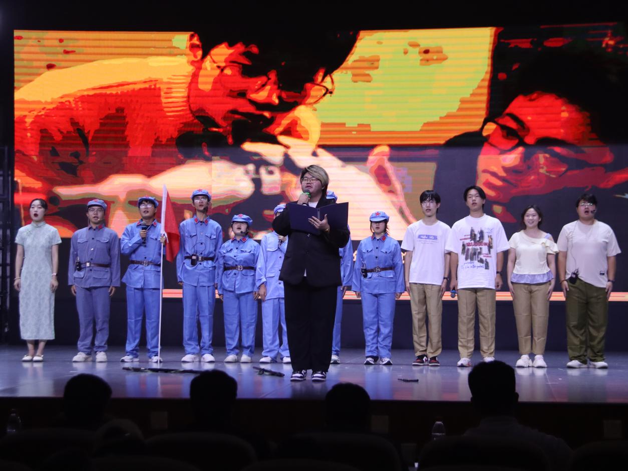 经过前期两个月的初赛与复赛,最终9个节目在决赛现场震撼上演。参赛作品紧扣主题,形式多样,既有感人至深的讲述,也有充满张力的表演,选手们以青春之声,深情演绎了“20岁的他们与我们”在不同时代背景下的家国情怀与责任担当。他们或以《青春抉择》聚焦战火硝烟中的铿锵玫瑰,生动展现抗联女兵用青春信仰照亮黑暗岁月的无悔抉择;或通过《军旅赤心,国家深情》娓娓道来一个军人世家三代人薪火相传的赤子之心,深刻诠释“山河虽无恙,吾辈当自强”的永恒信念;或以《燃烧的青春》巧妙呈现当代学子的深沉思考与革命先辈为民族救亡而奋发求学的奋进身影,两代青春之火交相辉映;或借助《百年薪火·与子同戎》深情讲述普通人如何在深沉家国情怀的滋养下,淬炼为挺立潮头的时代英雄的故事;或通过《血沃中华》震撼人心地重现董存瑞托举炸药包的壮烈一幕,引发观众强烈共鸣......整场决赛高潮迭起,掌声如潮。