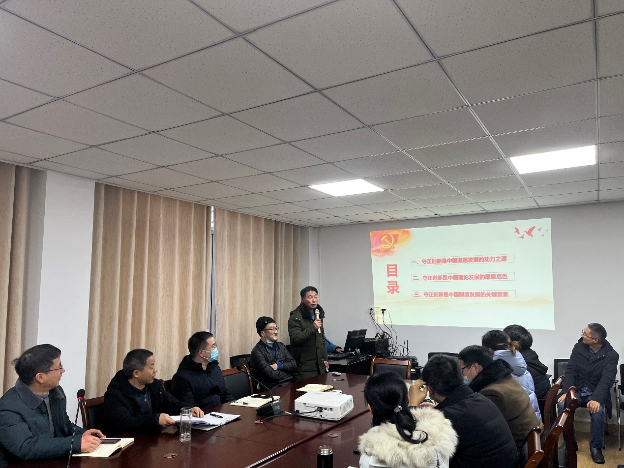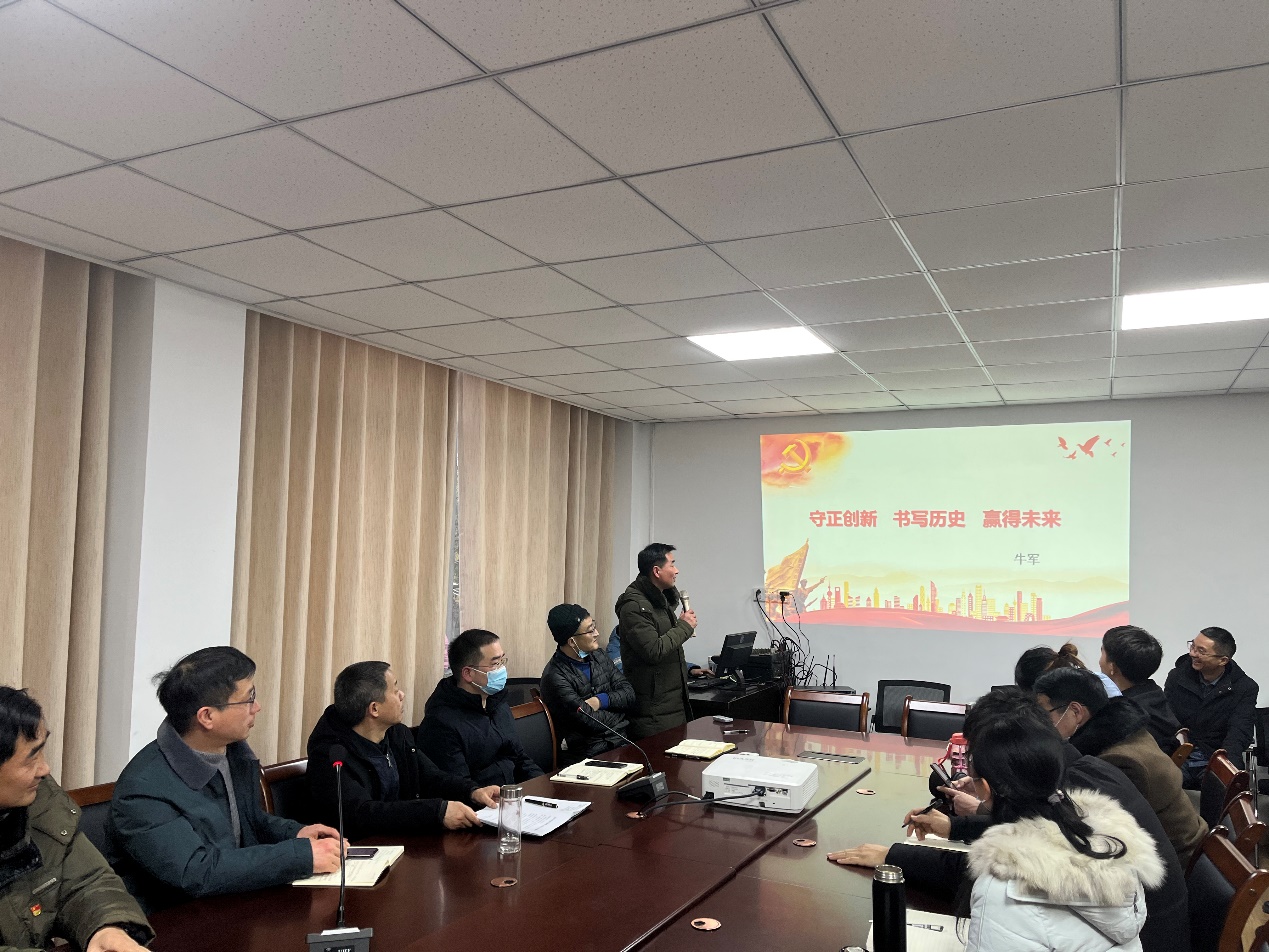 本网讯(学生记者/吴琪)12月29日,为推动党史学习教育进一步走深走实,信息工程学院在12教2楼会议室开展“守正创新 书写历史 赢得未来”主题党课,学院副院长牛军主讲,全体教职工党员参加。