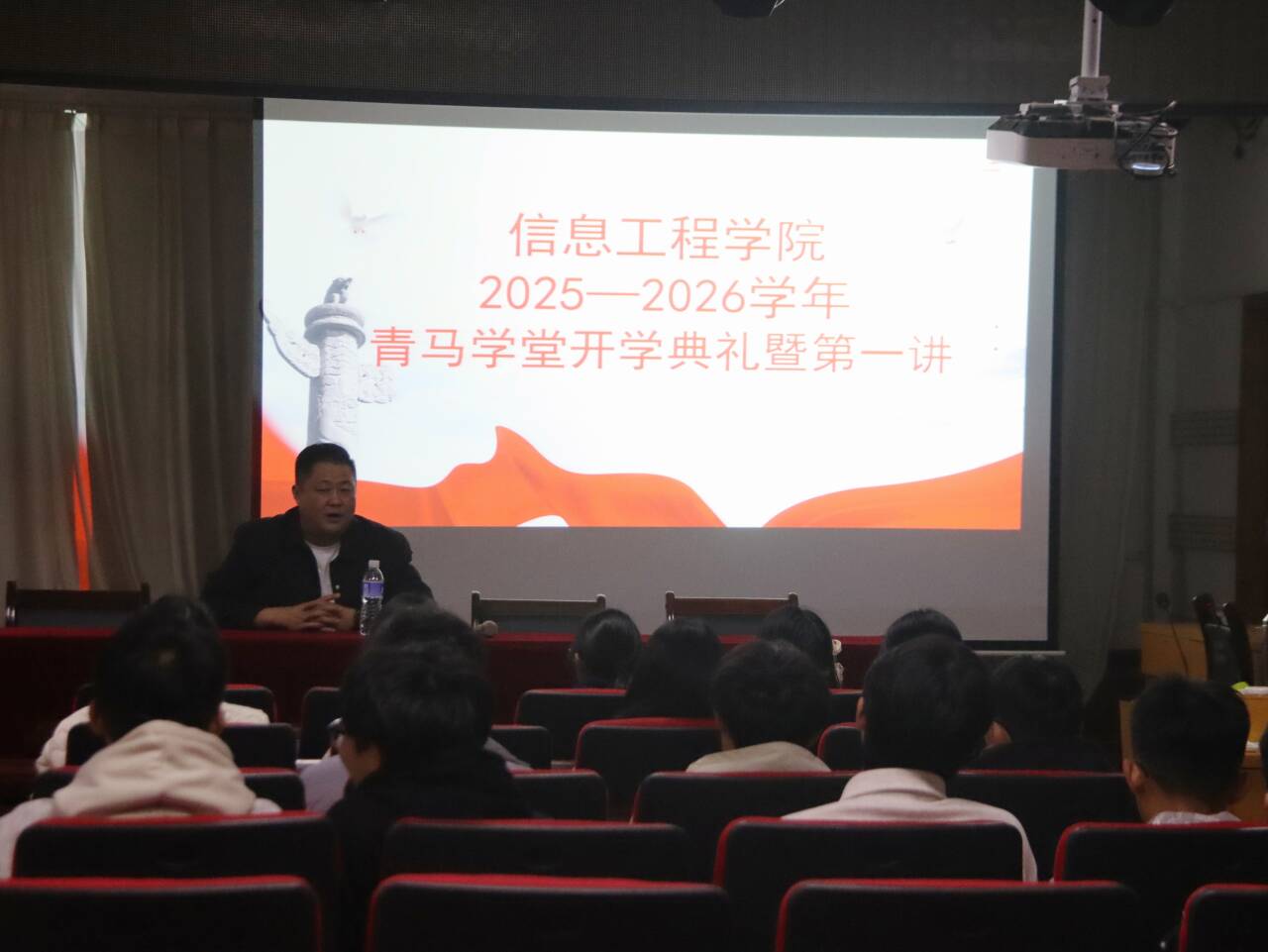本网讯(学生记者/苏婧媛)为深入推进青年马克思主义者培养工程,引导工科青年将个人理想融入国家发展大局,11月23日,信息工程学院于12教209开展2025-2026学年青马学堂开学典礼暨第一讲,本次活动由团学办主任赵杰主讲,全体青马学堂学员参与。