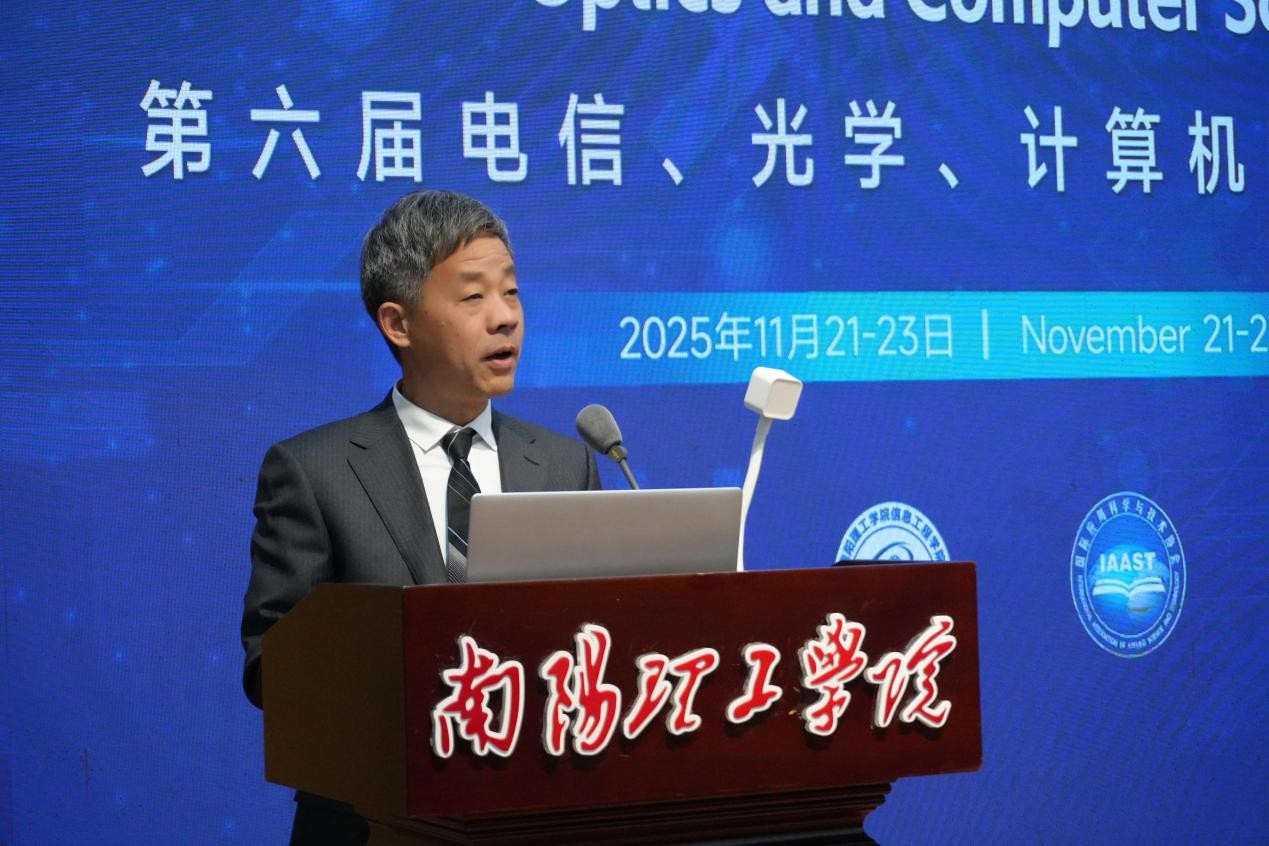 本报讯 (特约记者/曹原、学生记者/刘天童)为进一步推动计算机科学、电子信息、人工智能等核心学科及跨学科的合作与创新,11月22日,南阳理工学院以 “光网融合・智能赋能・产业协同” 为主题,成功举办第六届电信、光学及计算机科学国际会议(TOCS 2025),大会采用“线下主会场+线上云会场”模式,全校师生参与,南阳理工学院副校长黄金书出席,信息工程学院党委书记常士正主持。