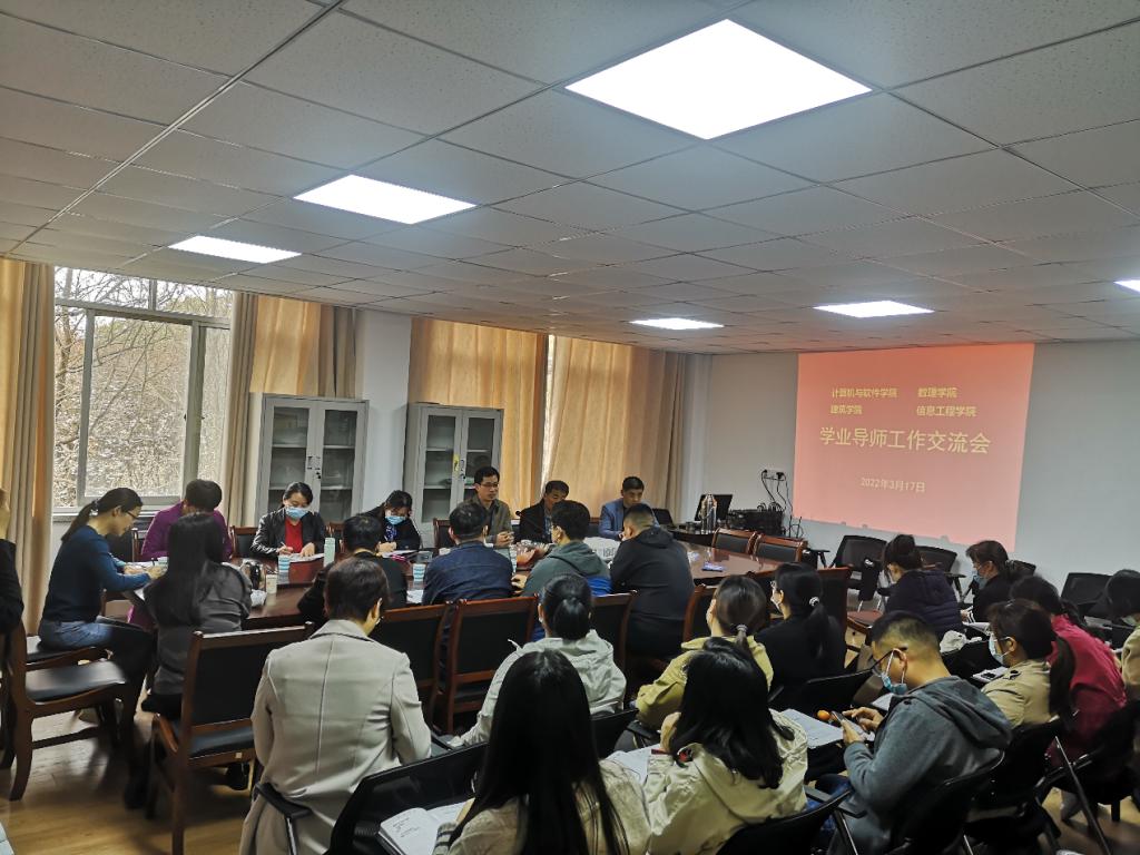 本网讯(特约记者/李壮辉)3月17日,“学业导师工作交流会”在信息工程学院会议室举行。会议由信息工程学院院长乔建良主持,计算机与软件学院、数理学院、建筑学院等单位的教学院长、教务办主任和部分学业导师参加会议。