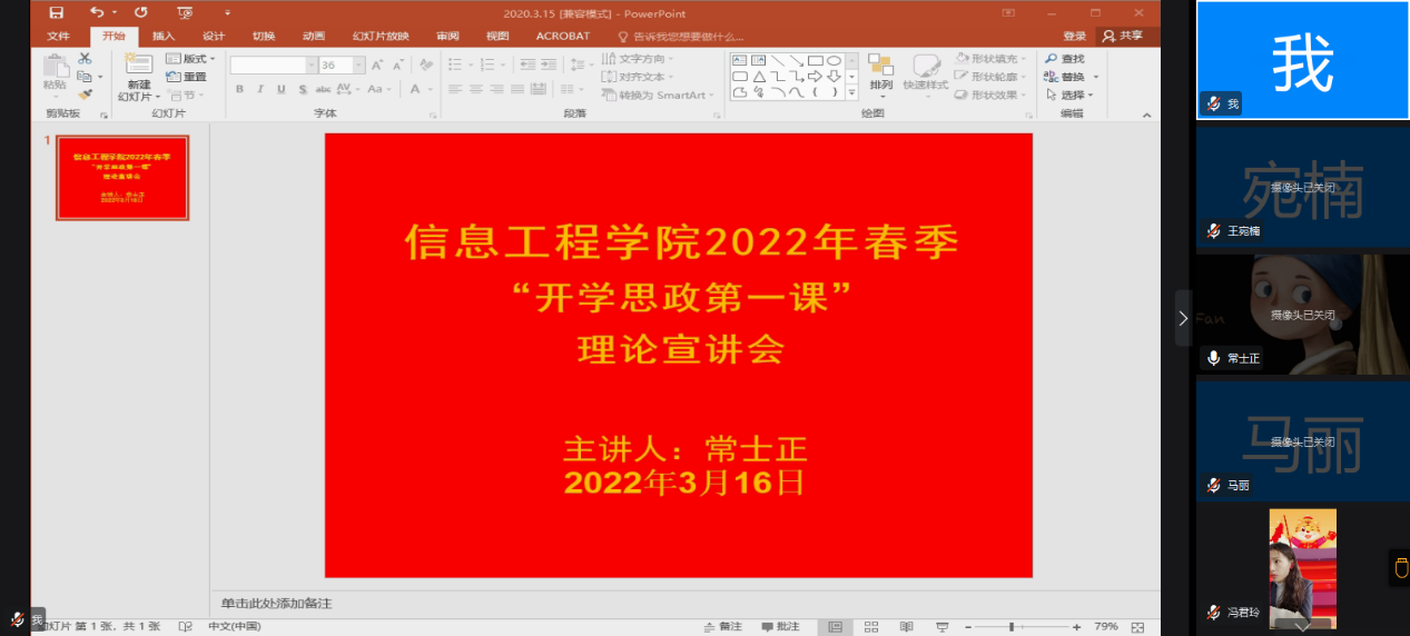 本网讯(学生记者/吴琪)3月16日,信息工程学院组织全院教师召开“开学思政第一课”理论宣讲会,学院党委书记常士正主讲,全体教师参加。