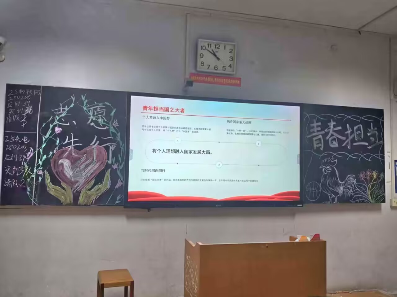 活动中,主持人通过PPT引出活动主题,解读志愿精神与“国之大者”的内在联系,并强调了活动纪律要求,随后,主持人带领全体团员深入学习习近平总书记重要贺信精神,围绕“服务国家战略、百姓民生、社会治理”三大方向,组织团员分享对志愿服务的认知与参与意向,让大家在交流中明晰志愿精神的实践路径,播放了志愿服务先进典型事迹短片与纪实影像,生动展现了志愿服务在国家发展、民生改善中的重要作用,校内外志愿服务优秀代表也分享了自身实践经历,以真实故事为团员青年树立榜样,凝聚起“为国奉献、为民服务”的青春共识。活动最后,主持人号召团员青年以贺信精神为指引,主动投身志愿服务事业。