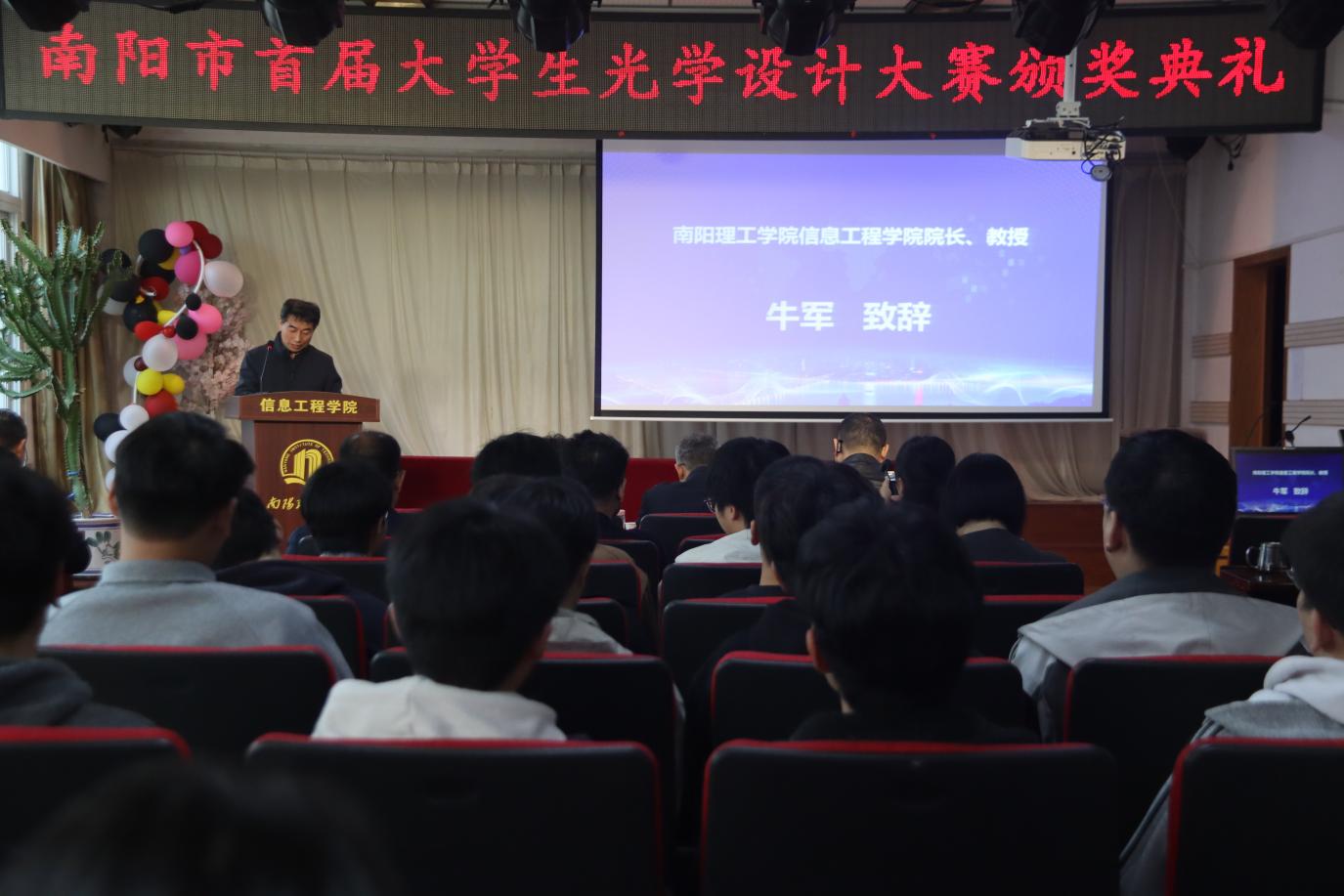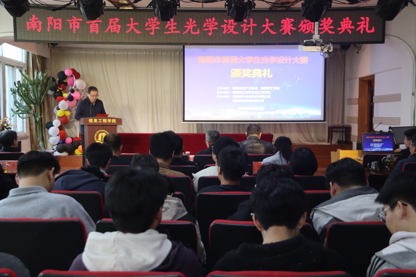 本网讯(学生记者/苏婧媛)4月1日,由南阳理工学院信息工程学院与南阳光电产业协会共同主办的南阳市首届大学生光学设计大赛颁奖典礼在信息工程学院209会议室隆重举行。本次大赛以“设计驱动创新、成果服务产业”为宗旨,旨在对接南阳光电产业真实技术需求,填补南阳地方高校在光学设计类专业竞赛中的空白,培育具备工程素养和产业视野的复合型光电人才。
