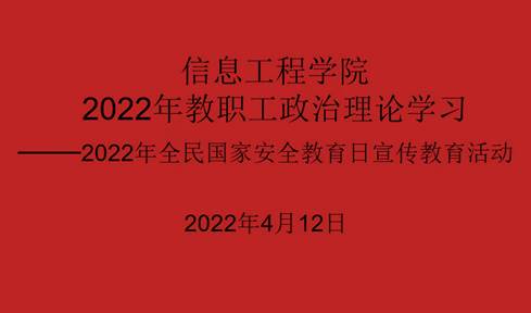 本网讯(学生记者/李林溪)4月12日,信息工程学院于12教2楼会议室召开2022年教职工政治理论学习会及开展国家安全教育日宣传教育活动。本次会议由党委副书记白秋阳主持,信息工程学院全体教师参加此次会议。