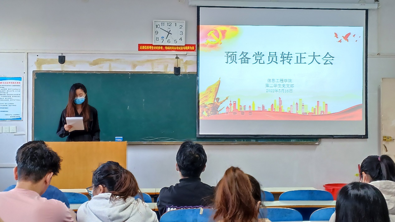 本网讯(学生记者/杨宇飞)5月16日晚,信息工程学院第一、第二、第三学生党支部分别于12号教学楼505、508、404教室举行预备党员转正大会,各党支部书记出席,全体正式党员、预备党员参加,到会人数符合会议要求。