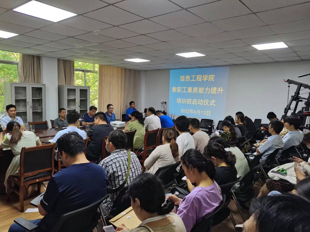 本网讯(特约记者/关阳)为提升教学质量与创新素质,帮助教师熟悉实验室仪器操作流程,掌握先进教育方法和技能,信息工程学院利用暑期时间开展教师能力提升培训班,6月13日,在12号教学楼二楼会议室举行培训班启动仪式,党委书记常士正出席,全体教职工参加。