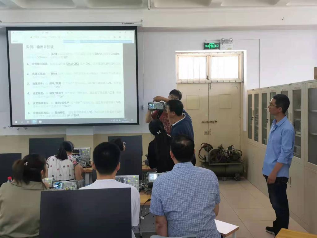 本网讯(特约记者/郭建昌)骄阳似火,蝉鸣声声。6月17日上午,信息工程学院的青年教师们放弃了休息,怀着对业务精进的热爱、对教育职责的担当,在4号教学楼4221实验室召开“数字示波器及任意波形发生器高级功能”学习研讨会。