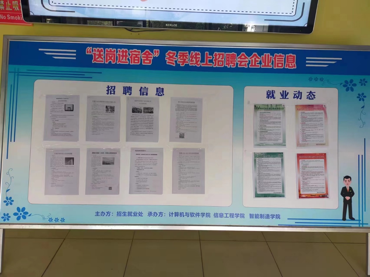 本网讯(特约记者/李志)为更好开展2023届毕业生就业工作,2022年11月21-27日由南阳理工学院招生就业处主办,我院联合计算机与软件学院承办开展“送岗位进宿舍”活动,深入同学身边,为每一位同学们解决就业问题。