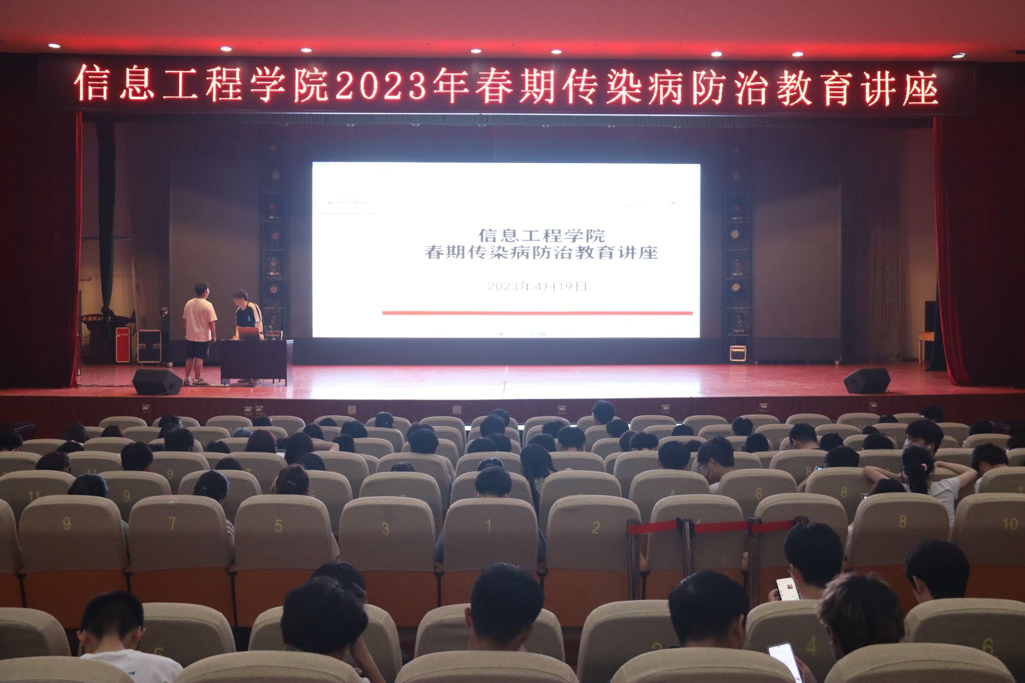 本网讯(学生记者/王锦鹏)春季是各种传染病的高发期,为提高学院传染病防控能力,普及传染病防治知识,提升学生自我防护意识,做好春季传染疾病防控宣传教育工作。4月19日晚,我院于毕业大厅开展2023年春季健康教育及传染病防治知识讲座。本次讲座特邀校医院医生杨冰为大家进行卫生知识科普。22级全体学生参与。