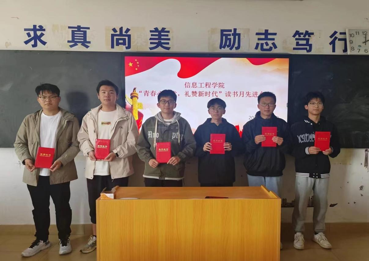 党建工作站通过对学生阅读思想政治类原著、原理类的书籍数量和读书心得感悟等情况为评选基础,结合学生学业情况,进行综合考察研究,决定授予张钟府,徐于航,邵昱昊,张杭,刘成,郑圳杰等六名同学“‘青春心向党,礼赞新时代’读书活动月先进个人”荣誉称号。