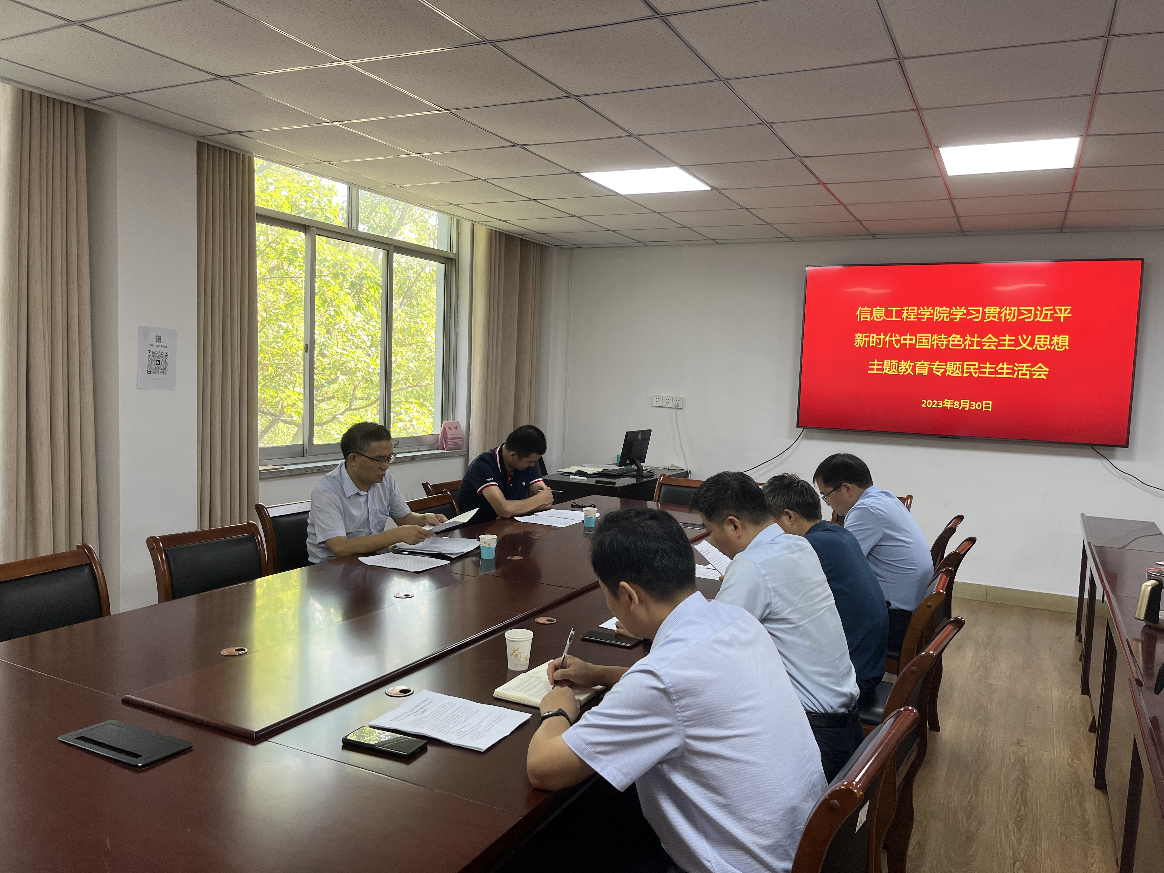 校党委学习贯彻习近平新时代中国特色社会主义思想主题教育专题民主生活会督导组刘兴武同志、姚晓伟同志到会指导,信息工程学院领导班子成员参加会议。