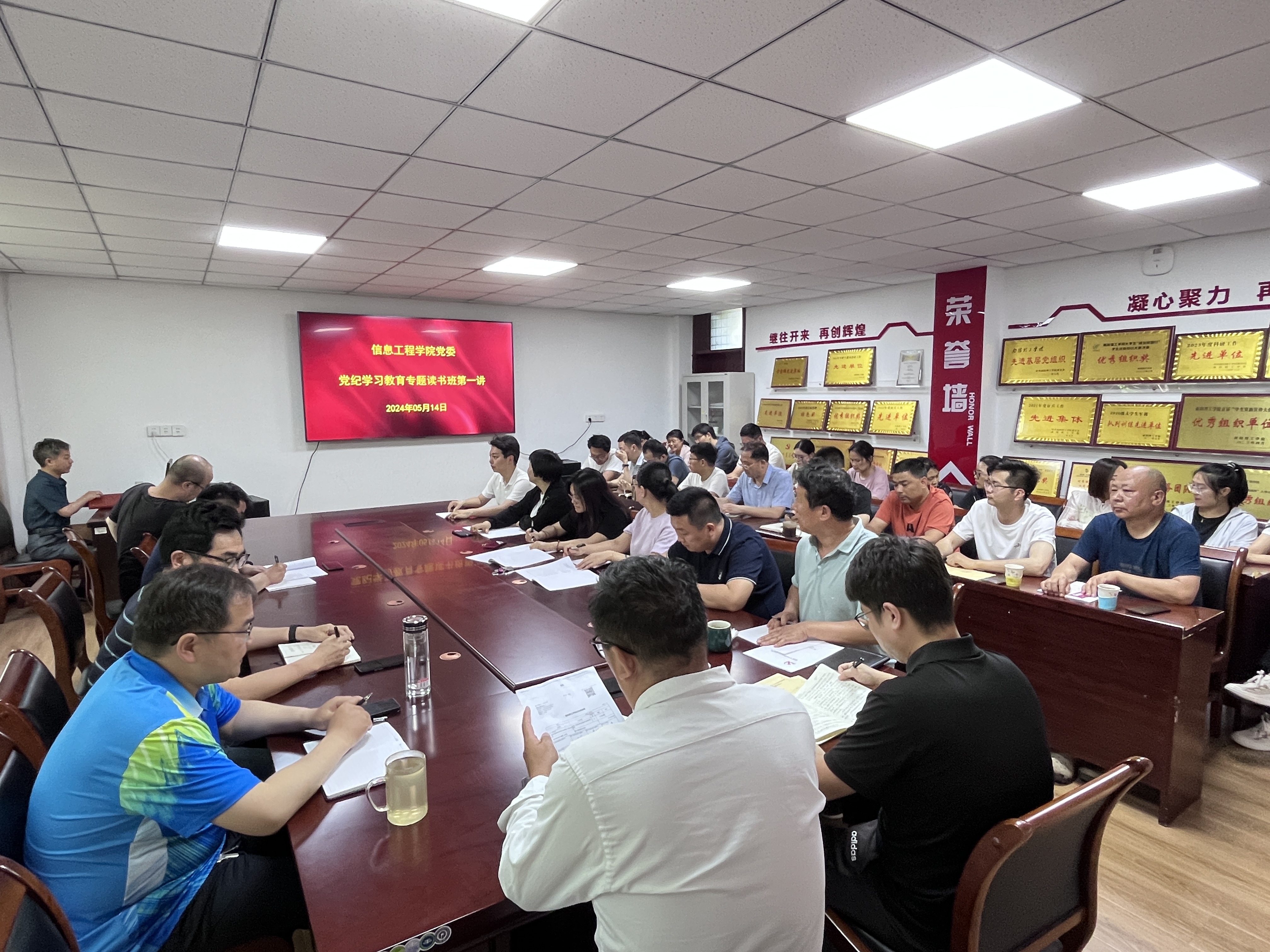 本网讯(学生记者/刘艺冉)5月14日,为了进一步强化党员纪律教育,提升党员政治素养。信息工程学院党委于12教216举办了党纪学习教育专题读书班第一讲。此次活动由学院党委书记常士正担任主讲,全体党员共同参加。