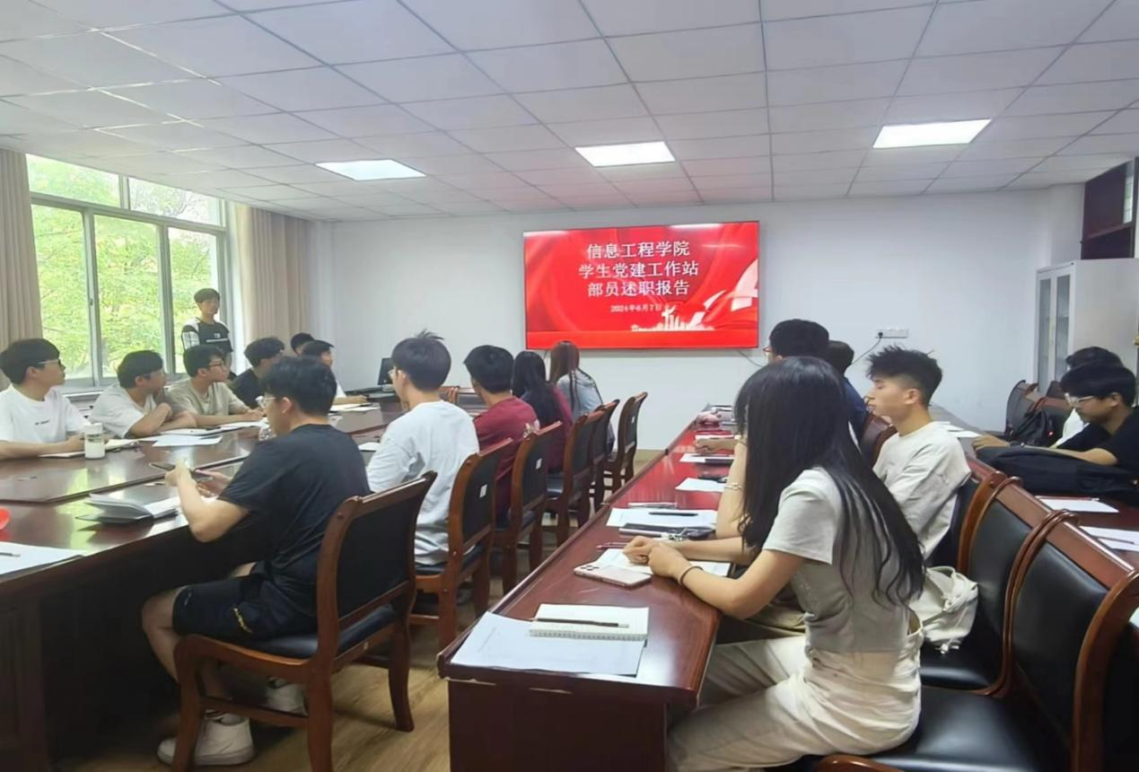 本网讯(学生记者/刘艺冉)6月7日,为了考察学生党建工作站成员的履职能力,加强学生党建工作站的队伍建设。信息工程学院学生党建工作站继部长述职评议会后,于12教216举行部员述职评议会。信息工程学院组织员郭争及信息工程学院学生党建工作站全体成员参加。