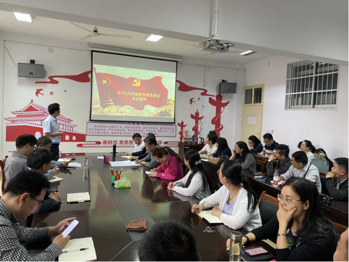 黄大勇还传达了4月份河南省委常委会会议精神,他指出,要认真学习省委常委会重要精神,进一步增强“四个意识”、坚定“四个自信”、模范做到“两个维护”,提高政治判断力、政治领悟力、政治执行力,稳中求进,推动学院全面发展。