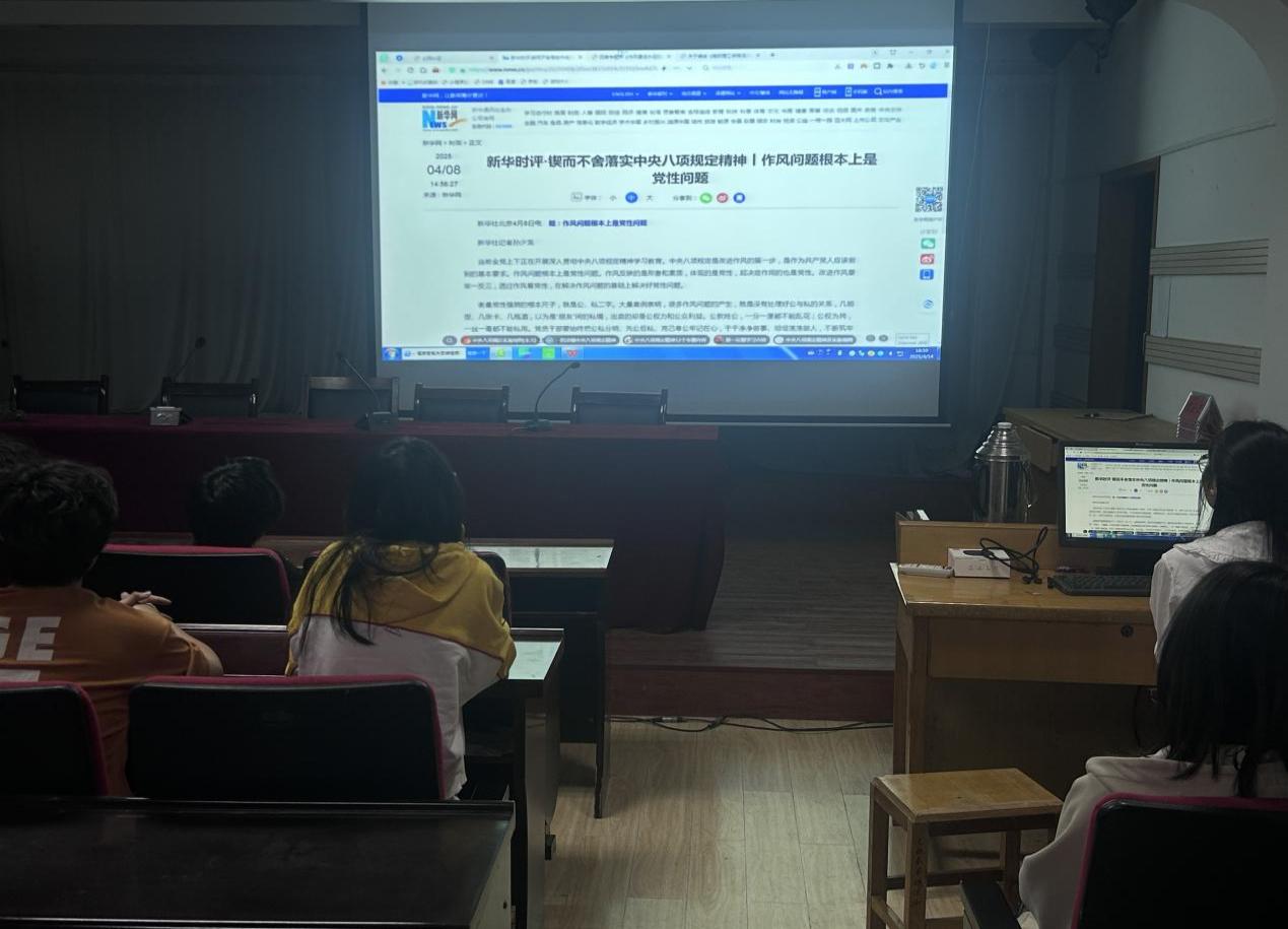 关阳首先带领大家系统学习了中央八项规定的核心内容。他强调,中央八项规定不是空洞的口号,而是实实在在的行动指南。作为学生党员,在学习和生活中要做到以身作则,发挥青年骨干的带头作用,以更高标准履职尽责。随后,刘鑫宇结合高校违反中央八项规定的典型案例,深入剖析了“微腐败”、“形式主义”等问题的危害性。她指出,学生党员虽身处校园,但在学术诚信、评优评先等工作中,要始终秉持公平公正原则,严守纪律红线。