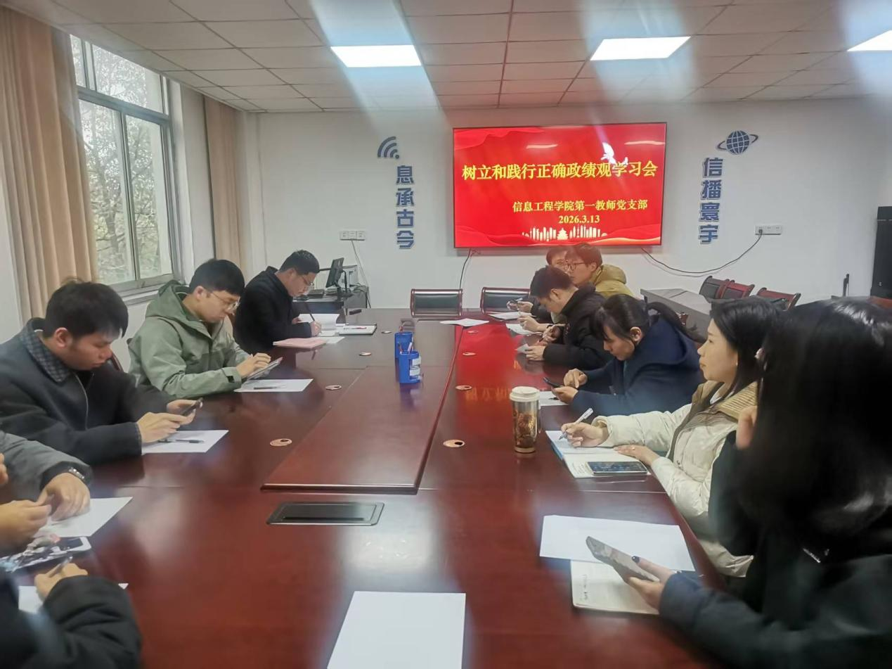 本网讯(特约记者/郭争 学生记者/贾阳冬 杨嘉骐)根据上级学习教育工作安排,3月以来,信息工程学院各党支部开展树立和践行正确政绩观学习教育,以思想铸魂引领师德师风建设、夯实青年思想根基,凝聚师生奋进力量。