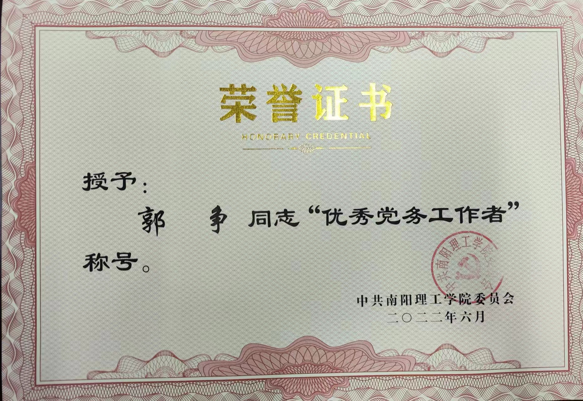 本人自研究生期间先后担任党支部宣传委员、党支部书记,工作以后担任央企宣传干事,目前担任学院组织员。作为一名党务工作者,我注重政治理论和业务知识的学习和更新,充分发挥共产党员的先锋模范作用。在疫情期间坚守在疫情防控第一线,积极宣传疫情防控政策,发掘防疫抗疫先进事迹,凝聚抗疫红色力量。在“不忘初心、牢记使命”主题教育和党史学习教育中,多次组织并宣传相关的党员教育学习工作,组织参与“坚守初心,学思践悟”主题党日征文比赛,党史知识竞赛,协助组建党员先锋队,多次研究基层党建工作并形成政研论文成果3篇,获得中国电力规划协会企业文化专委会课题研究成果二等奖2项,并积极探索基层党建工作模式——“双考四评”党建工作责任制,实现基层党建成果落地见效。工作以来,先后在媒体网站、报刊期刊上发表新闻作品五十余篇,于2021年获得河南省电力勘测设计院“宣传先进个人”称号。进入高校工作以来,经常与学生谈心谈话,掌握思想动态,开展思想政治教育,促进学生身心的健康发展,在“观念能力作风建设年活动中”选树学生榜样,宣传典型事迹,切实践行高校教师为党育人、为国育才的光荣使命。