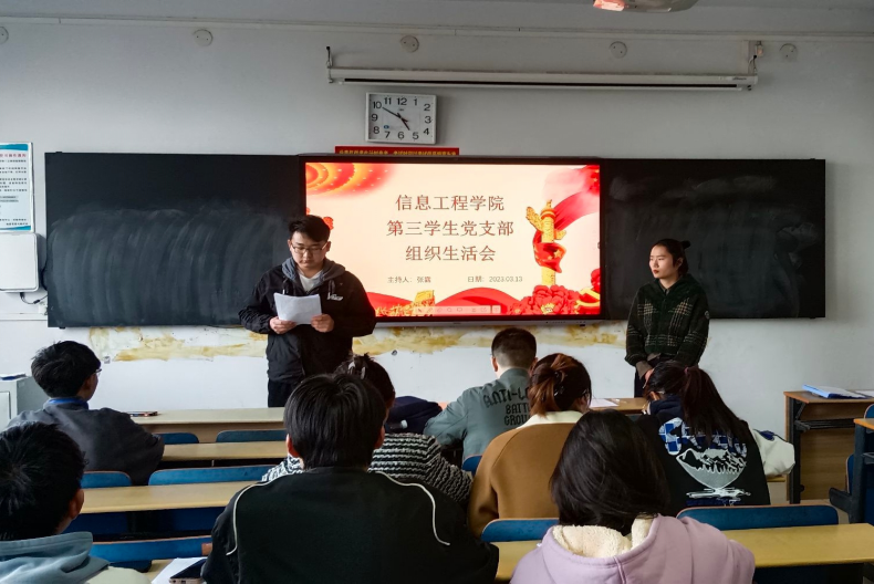 本网讯(学生记者/徐于航)为严格党的组织生活制度,坚持自我革命,3月13日下午,信息工程学院三个学生党支部于12教召开2022年度组织生活会和民主评议党员。会议由三位支部书记郭争、关阳和张露同志分别主持,全体学生党员参加。