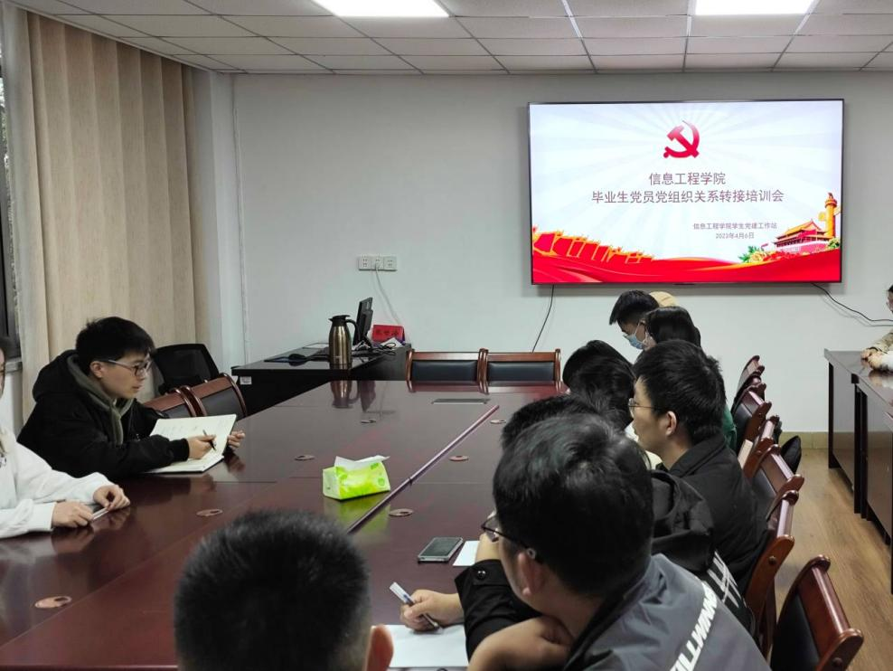 本网讯(学生记者/徐于航)4月7日,信息工程学院于12教216会议室开展毕业生党员党性教育暨党组织关系转接培训会,学院组织员郭争及学生党建工作站部分学生干部进行讲解,19级毕业生党员参加。