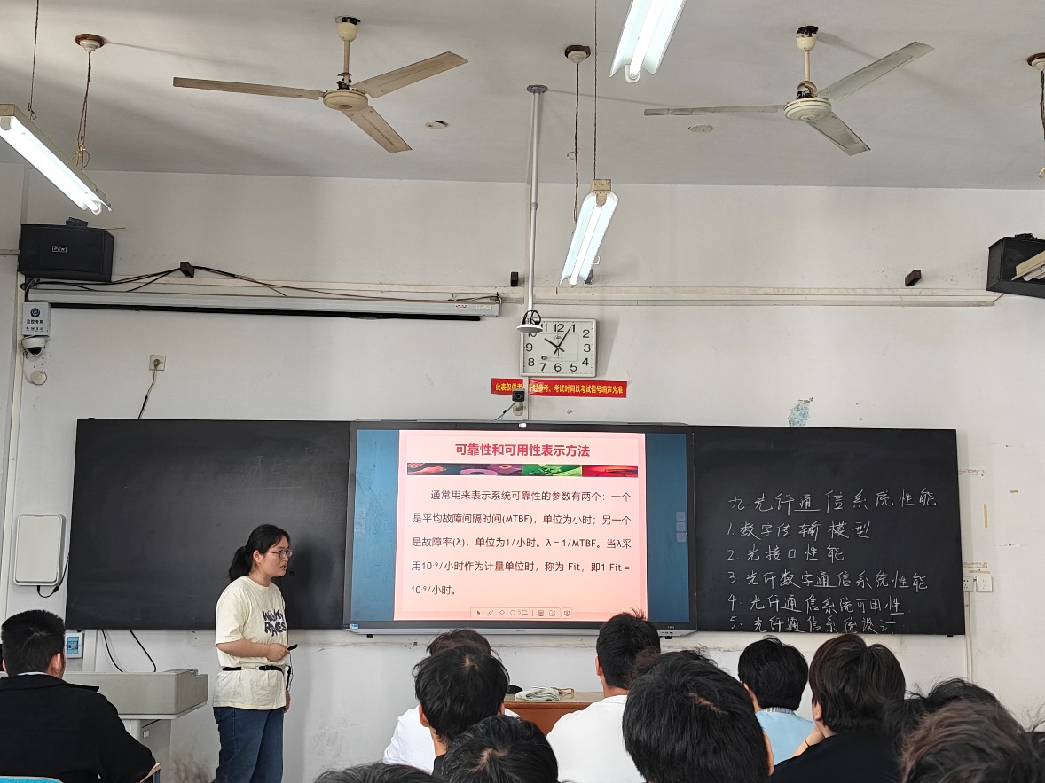本网讯(特约记者/周荣艳)为迎接审核评估工作,促进教师教学经验交流,进一步有效提升课堂教学质量,2025年4月16日上午,物联网工程教研室全体教师走进光电信息科学与工程专业魏嘉老师《光通信技术》的课堂,进行深入的学习交流。