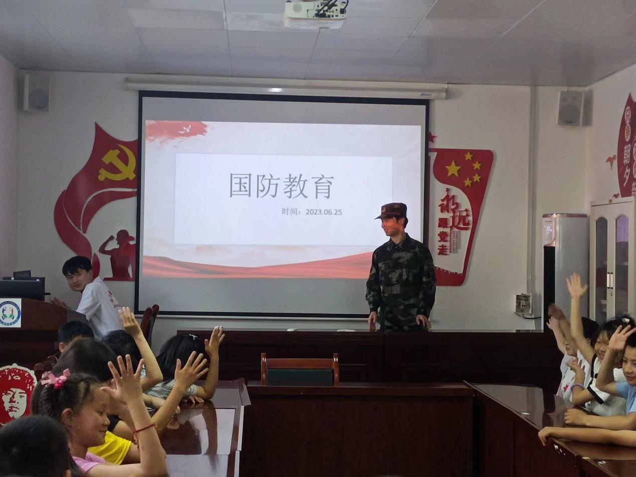 本网讯(学生记者/杜娟)信息工程学院把大学生国防教育和暑期“三下乡”社会实践活动相结合,于6月25日组织以“矢志国防教育,笃行青春理想”为主题的国防教育理论宣讲团队赴镇平县高丘镇黑虎庙小学开展社会实践活动。
