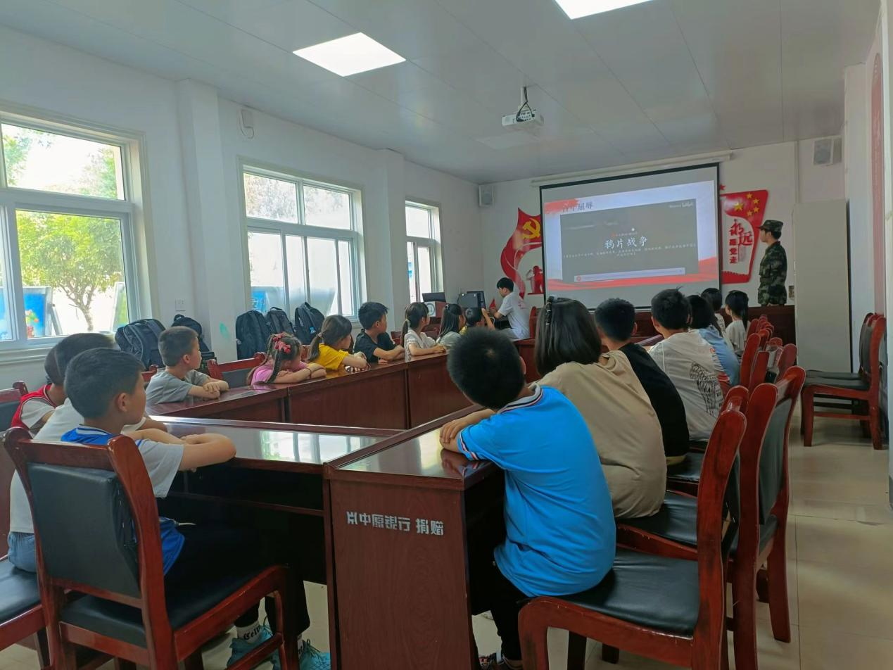 按照既定规划,实践队成员首先来到黑虎庙小学会议室,为三年级学生进行宣讲。宣讲内容主要分为国防教育、总体国家安全观和二十大国防知识三部分,实践团队成员秦天琦主讲,其余成员辅助并拍照记录。讲解中借助震撼人心的视频让大家感受我国国防力量的强大。秦天琦还通过讲故事的方式分享了自己的部队经历,热情地和小朋友们互动,解答他们的疑问。