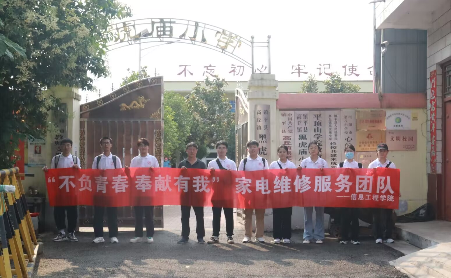 本网讯(学生记者/赵玉柱)6月25日,信息工程学院组织以“不负青春 奉献有我”为主题的家电维修服务团队师生一行12人赴镇平县黑虎庙小学开展暑期“三下乡”社会实践活动。