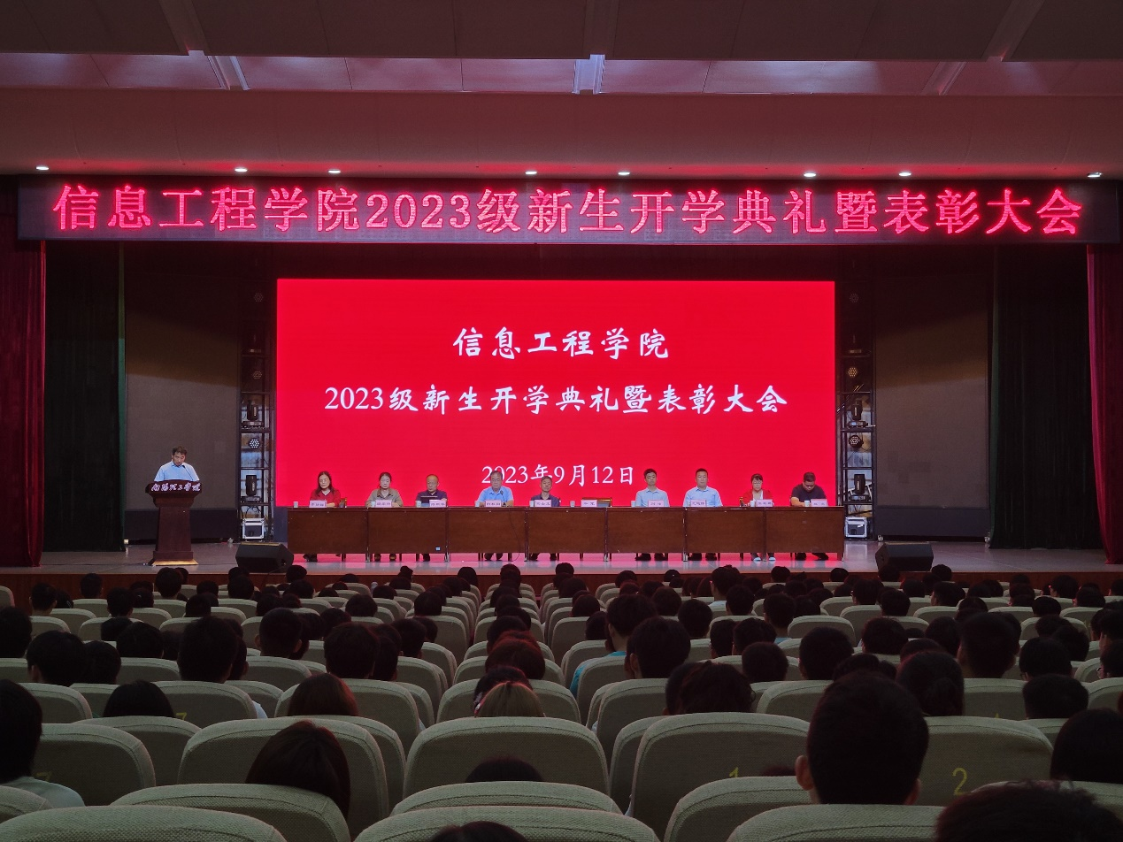 本网讯(特约记者/张露 学生记者/梁森森)9月12日晚,为祝福并鼓励即将踏入全新征程的新生,同时对在校优秀学生进行表彰。信息工程学院于西北校区小礼堂举行2023级新生开学典礼暨表彰大会。学院领导班子及各教研室主任,全体辅导员,500余名新生参与典礼仪式,仪式由学院党委副书记白秋阳主持。