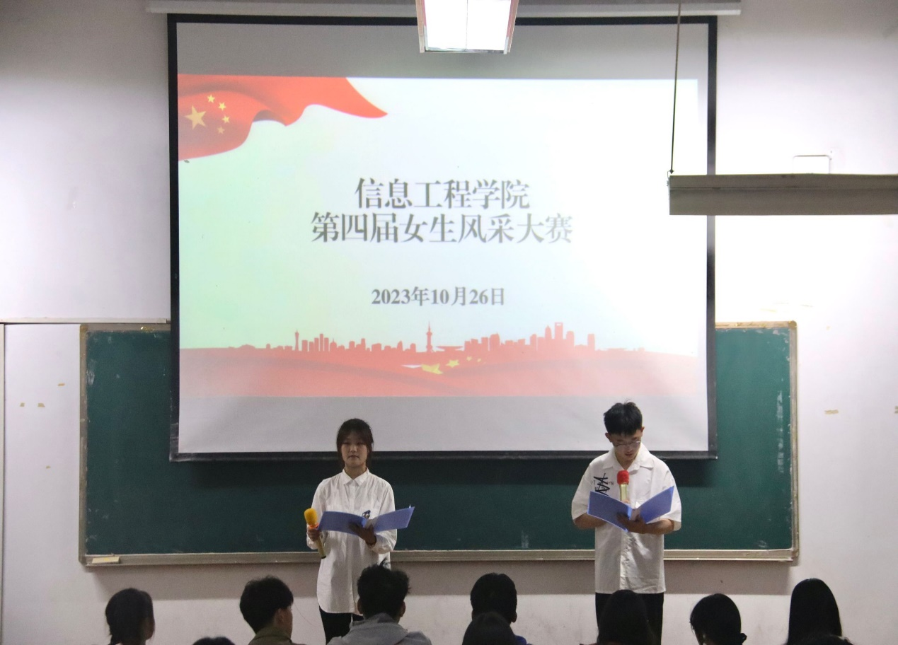 本网讯(学生记者/梁晨阳)10月26日晚,为展现青年学生的阳光与朝气,丰富校园文化活动,展现尊重女生、关爱女生的良好风尚。信息工程学院于14教104室开展第四届校园女生风采大赛。学生会负责人及23级学生代表担任评委。