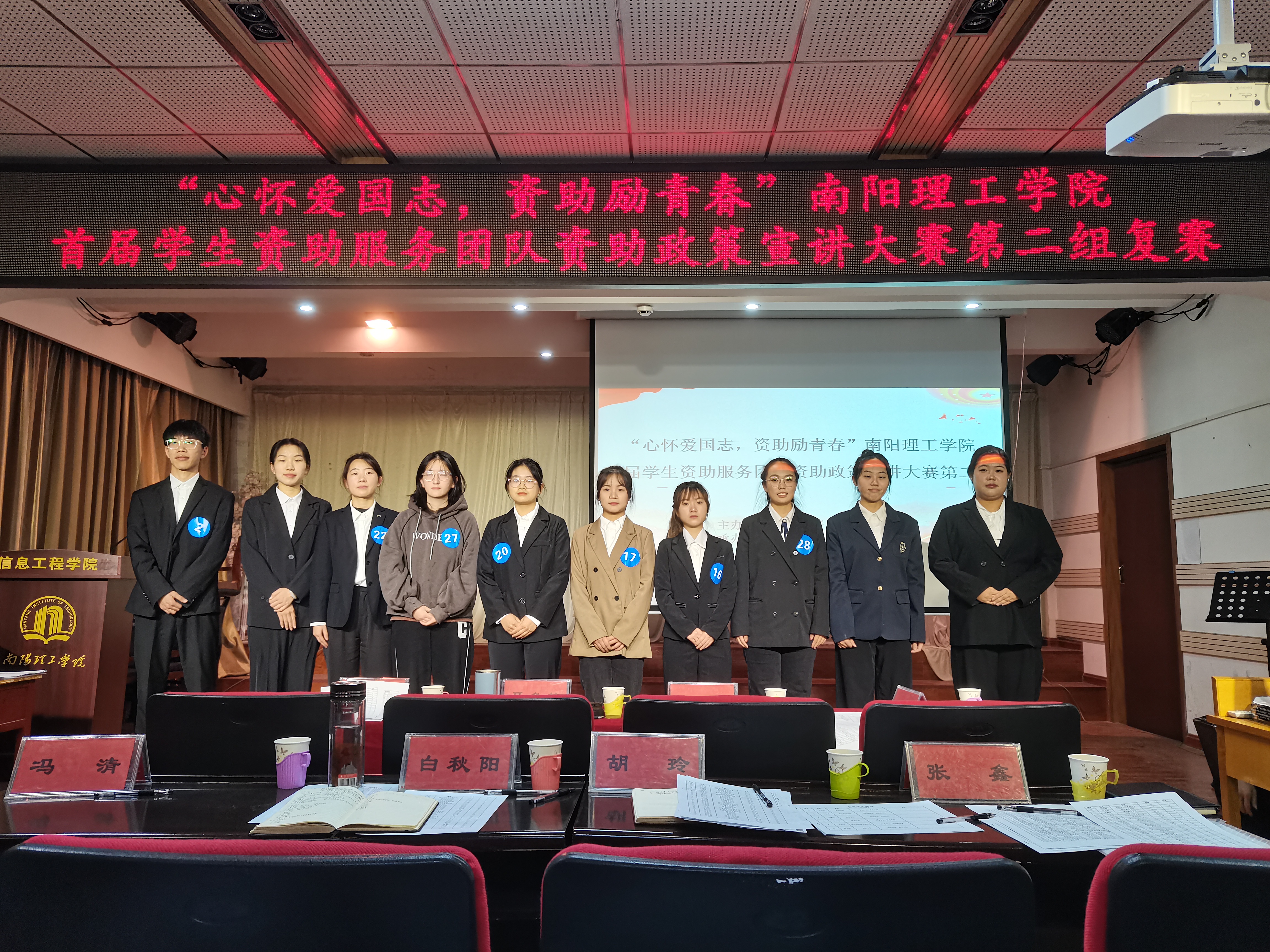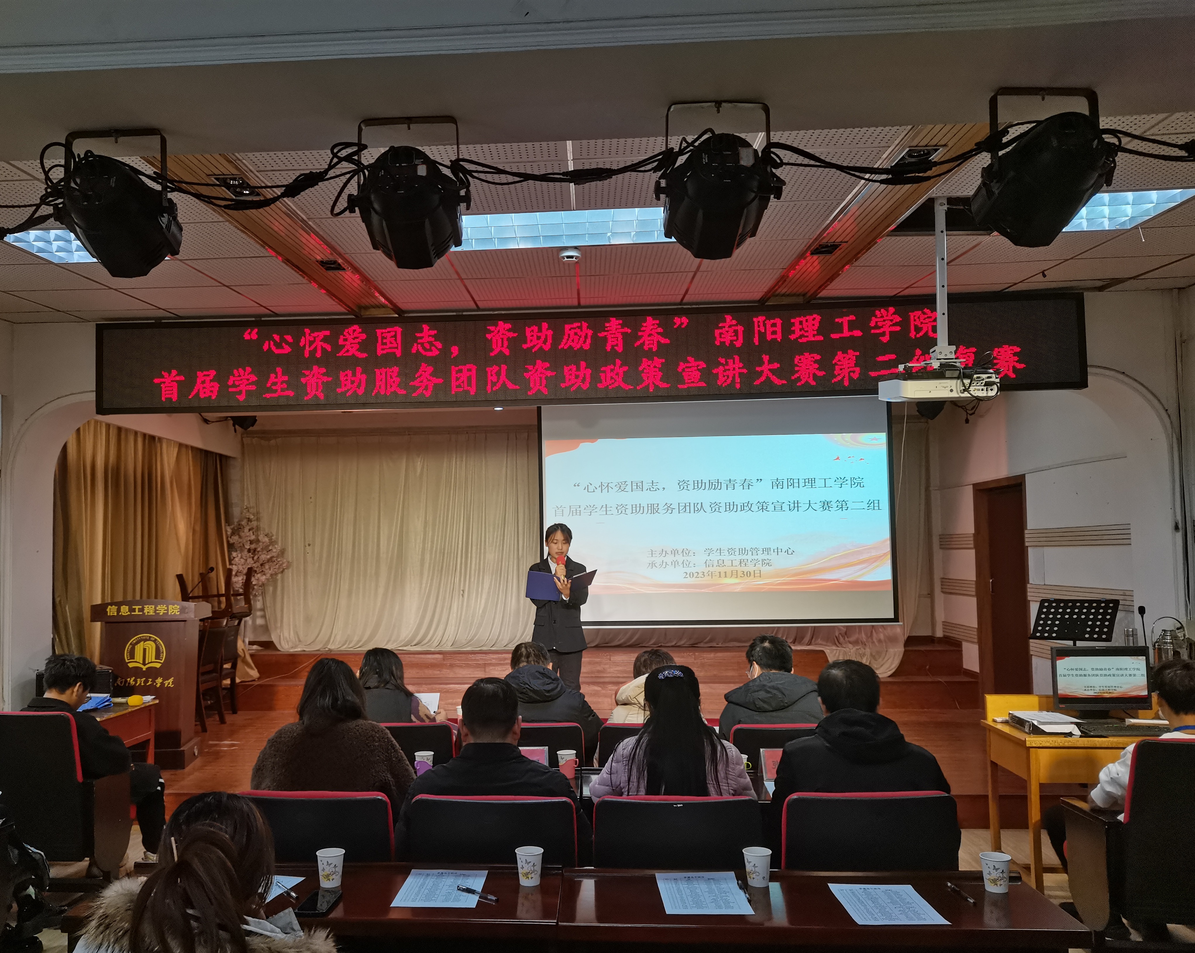 本网讯(特约记者/关阳、学生记者/胡美娜)为全面学习贯彻习近平新时代中国特色社会主义思想,深入践行党的二十大精神,进一步宣传国家对高校家庭经济困难学生的各项资助政策,11月30日下午,由信息工程学院承办的“心怀爱国志,资助励青春”南阳理工学院首届学生资助服务团队资助政策宣讲大赛第二组比赛在12号教学楼207会议室顺利举办。
