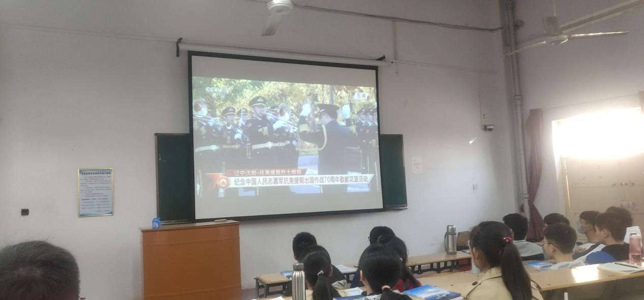 本网讯(特约记者/张露 学生记者/丁奇帅)10月23日上午,信息工程学院在3教303组织2020级全体新生观看纪念中国人民志愿军抗美援朝出国作战70周年大会,团学办主任赵杰参加并主持活动。
