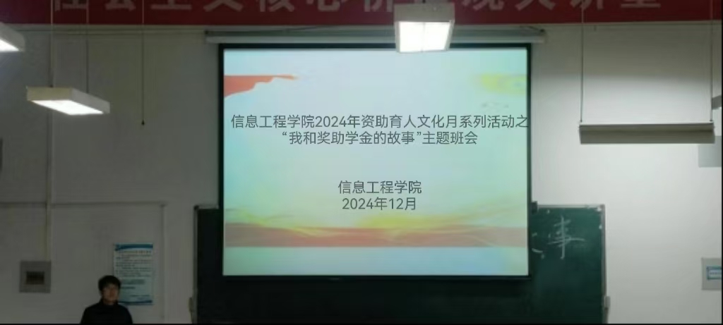本网讯(学生记者/王越)为培育和践行社会主义核心价值观,充分发挥资助育人作用,激发学生的学习动力。12月15日晚,信息工程学院于14号教学楼开展“我和奖助学金的故事”主题班会。本次班会由全体24级学生参加。