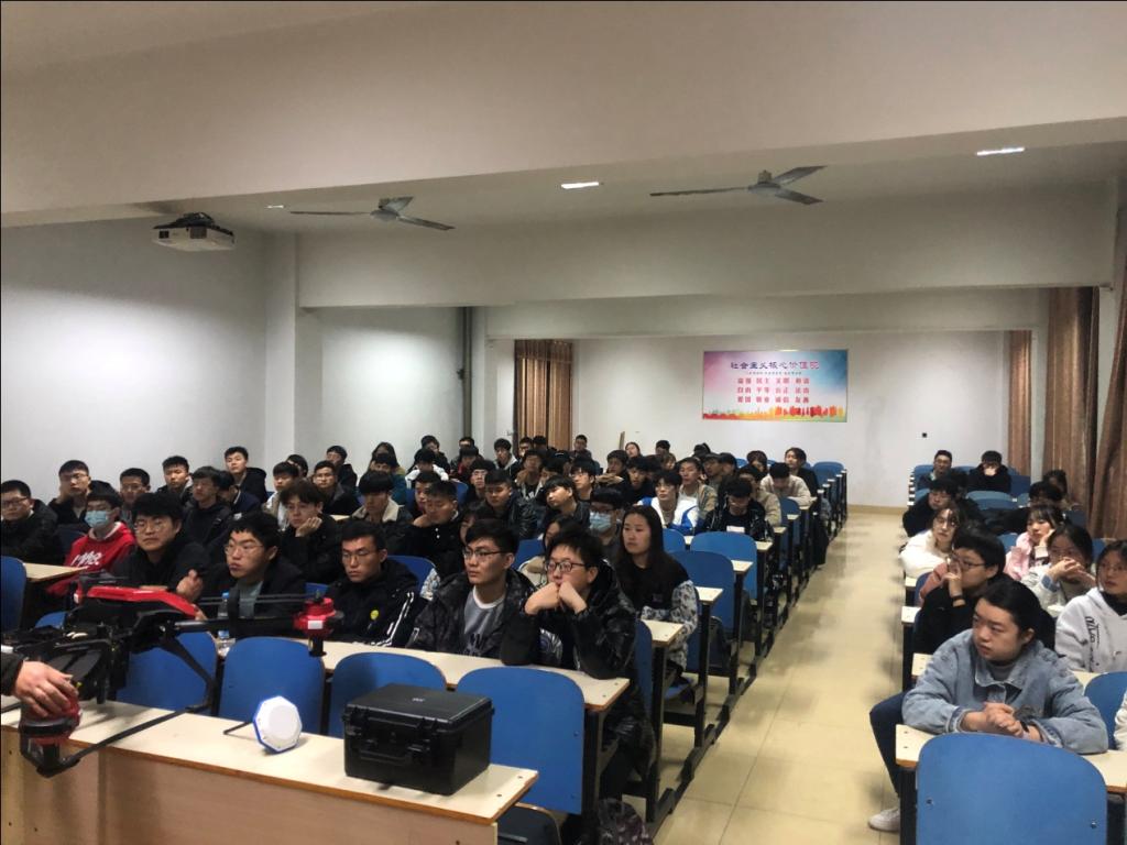 随后,王佑科对无人机的组成、模块、应用场景以及无人机的发展前景进行介绍。他说到,无人机是利用无线电遥控设备和自备的程序控制装置操纵的不载人飞机。无人机如今广泛应用于航拍、农业植保、微型自拍等领域,发展前景十分可观,但想有所收获,还必须投入相当的时间和精力。