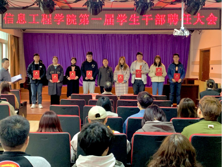 仪式上,李志宣读了信息工程学院第一届学生干部聘任名单,常士正、乔建良分别为学生干部颁发聘书。