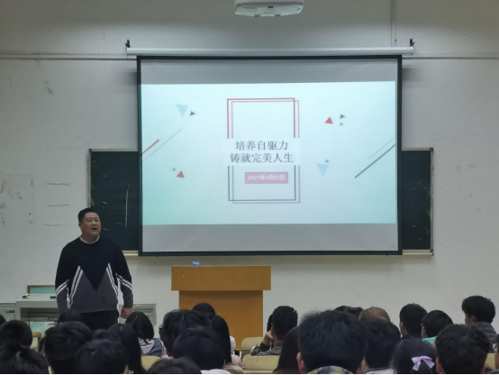赵杰老师用自己的事例讲述了形成自驱力的重要性。诙谐幽默的语言让同学们拍手叫好,整个教室营造出轻松欢快的氛围。从而让同学们能更加的反省自身。