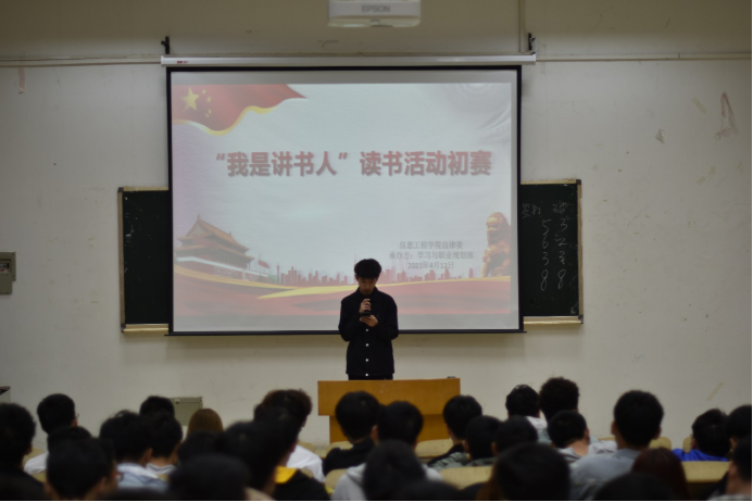 本网讯(学生记者/李林溪)4月12日,信息工程学院在7教101教室举办“我是讲书人”比赛初赛,20级学生观看参加本次比赛。